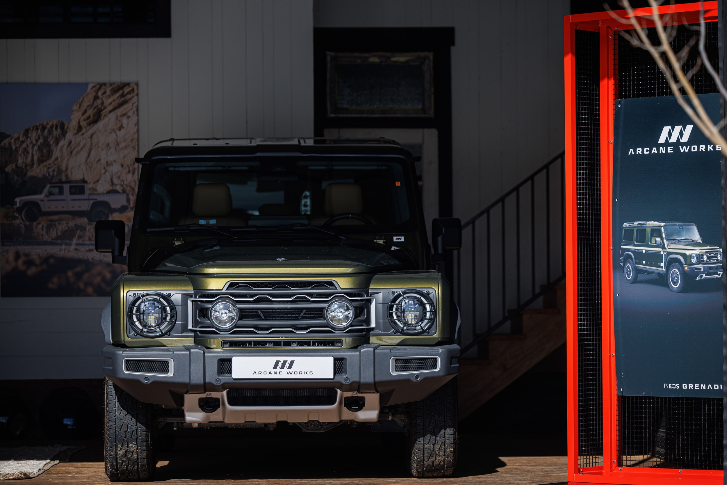 We got our first look at the Arcane Works Detour at Dunbar Ranch, where it sat on static display as the only one of its kind in the country. Unlike the other Grenadiers at the event, this one wasn’t there to be driven — it was there to be examined.