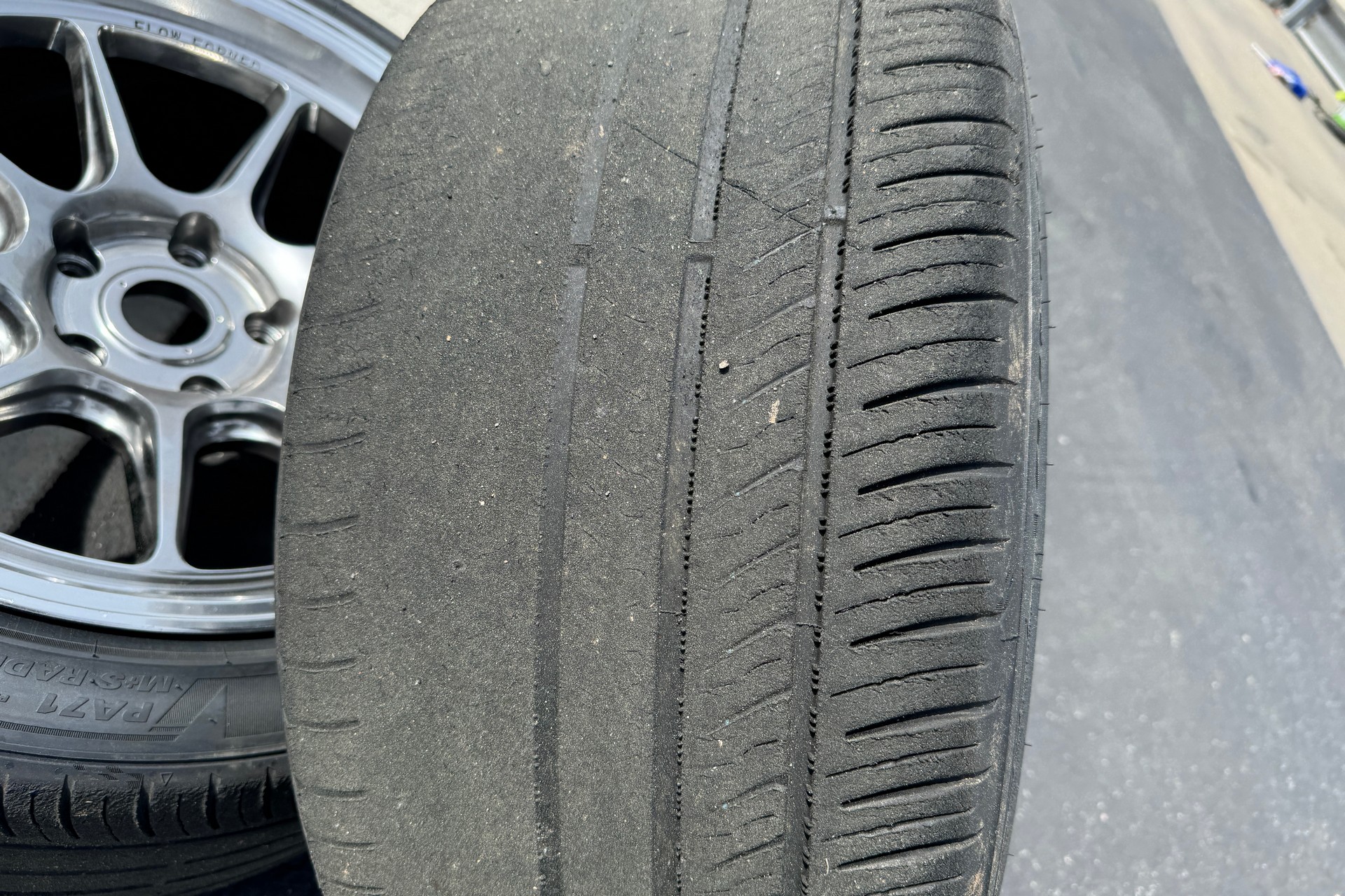 Oh, we saw the all-season in one additional place: on the rear axle of a couple of drift cars. Strapped into the passenger seat, pro drifters offered me a wild, tire-smoke-filled ride around a chunk of the track. Again, not tons of lateral load. But the consistency of the tire’s performance impressed, even when shredded to their cores.