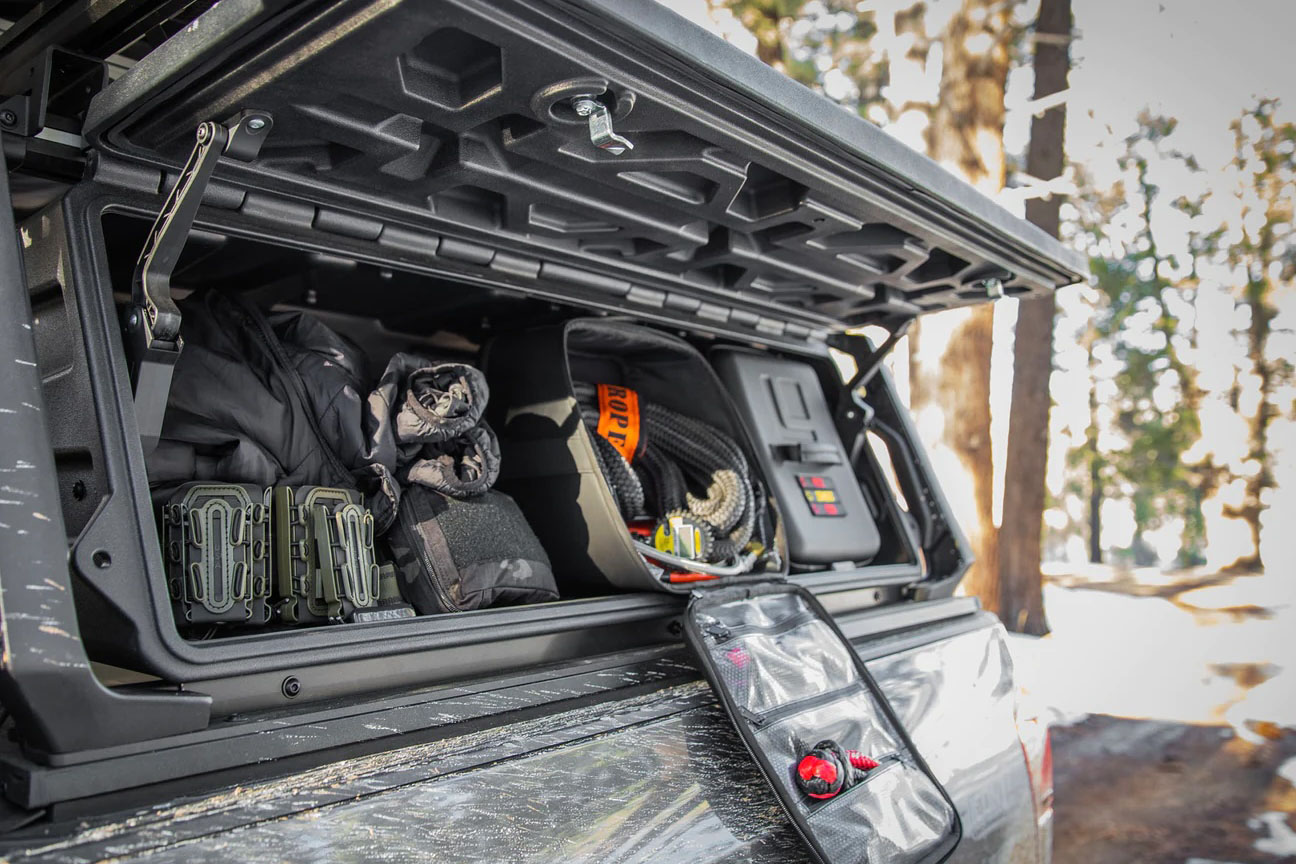 As someone who uses my truck as a base camp just about every season of the year, secure and organized storage is invaluable. I’ve had every configuration you can imagine, from totes to duffel bags and everything in between. Because of my lifestyle, I need my truck bed. I can’t rig it out with a full in-bed camper and I certainly can’t be made into a van lifer just yet. I have feed, dogs, and meat to haul.