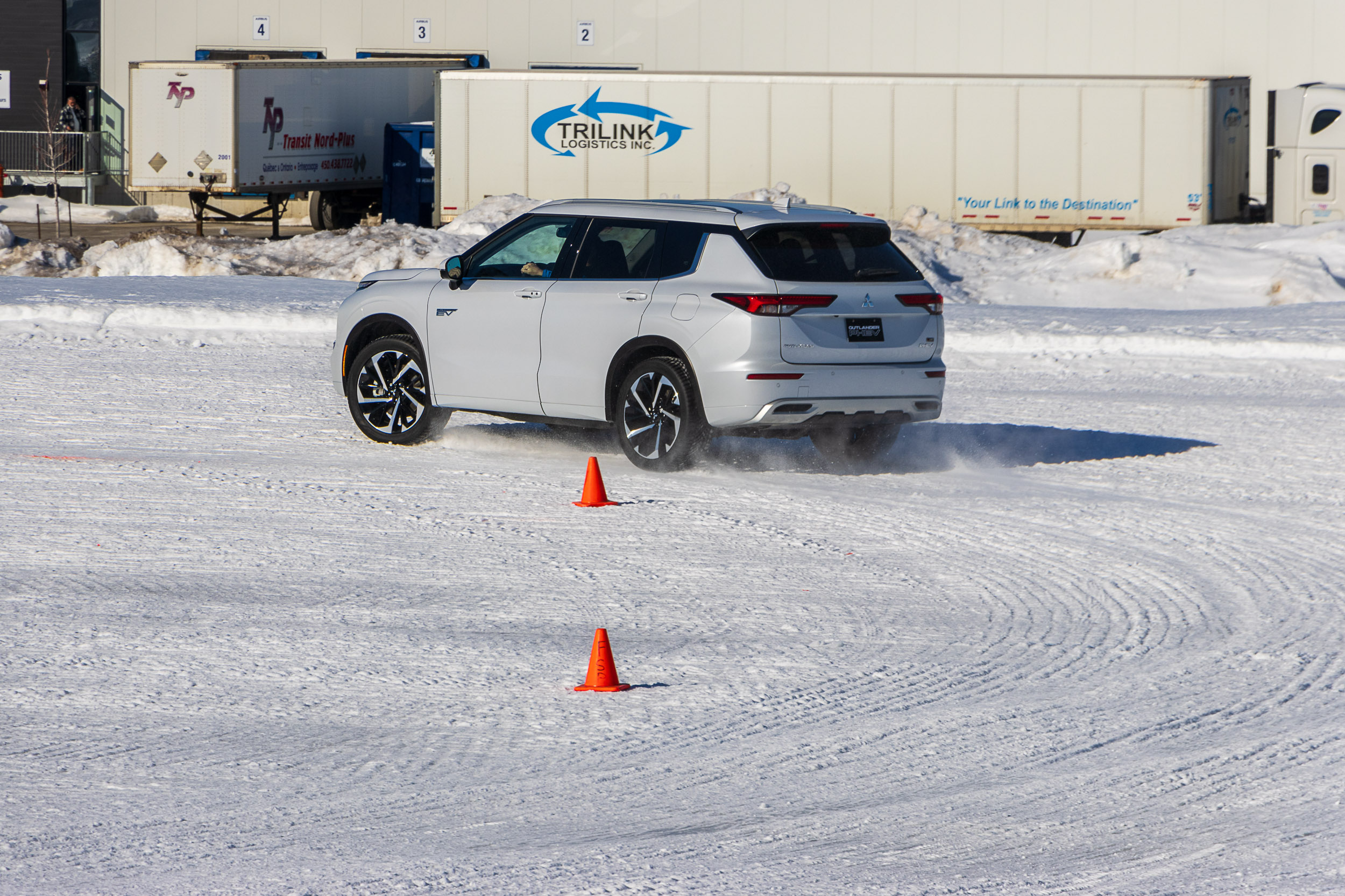 In the afternoon, Mitsubishi has the test vehicles on a longer course. This time, there are more twists and turns, as well as a slalom. The surface is slick from the sun starting to melt the snow, so the S-AWC system has to work even harder.