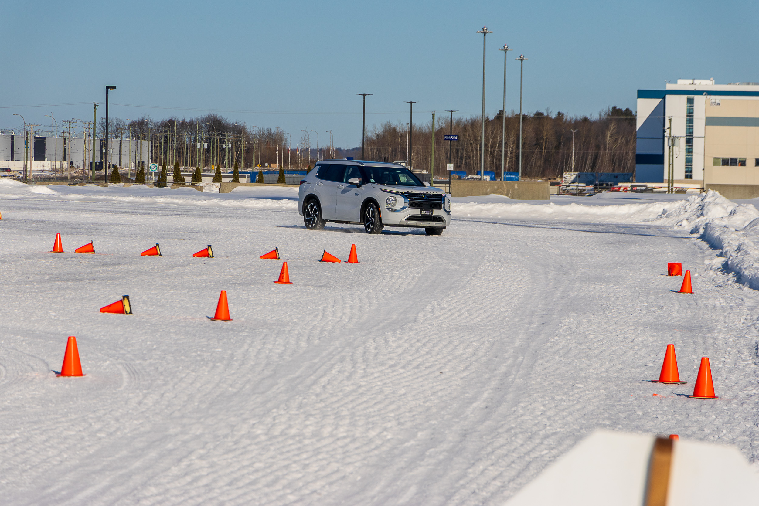 But, winter isn’t what it used to be, even in the Great White North. So, while the temperatures were below freezing, there wasn’t much in the way of snow. Fortunately, Mitsubishi wasn’t relying on the MTQ (Quebec for DOT) doing a lousy job of clearing to make sure we could experience the AWD system. It had set up a course on the frozen surfaces at the International Center of Advanced Racing (ICAR).