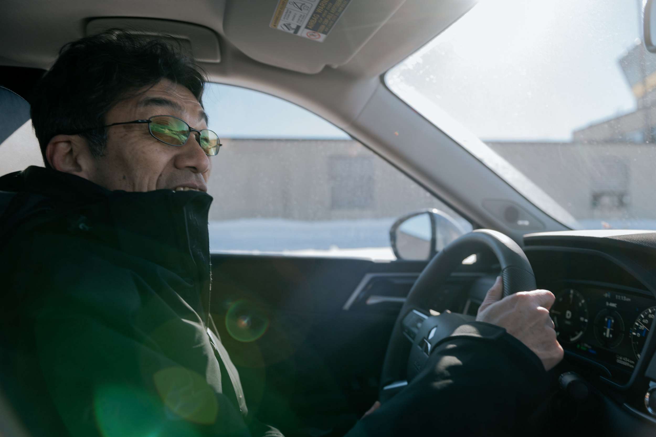 OK, time for the drive. We’re set up on a massive parking lot, coated in around a foot of ice. A tractor roughs up the surface every morning, leaving a thin layer almost like snow. Because even with the Yokohama BluEarth winter tires fitted, glare ice isn’t a surface where you’ll learn anything. Or go very far.