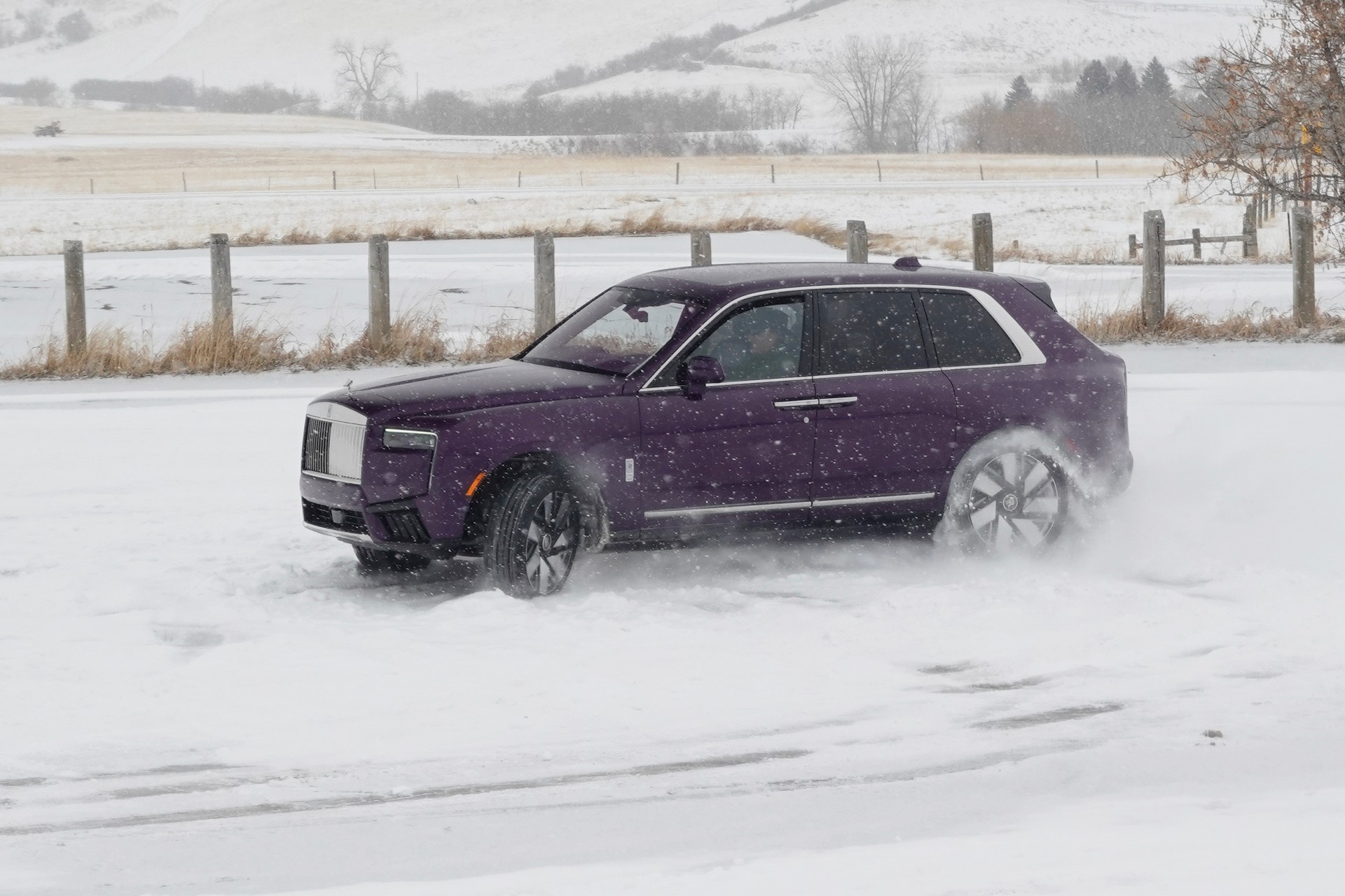 Best of all, those attributes work well in the snow, where sudden driver inputs usually cause sharp vehicle movements and lead to a loss of control. Instead, even on all-season tires in such frigid temps, the beefy Cullinan (which weighs over 6,000 pounds) never felt out of control.
