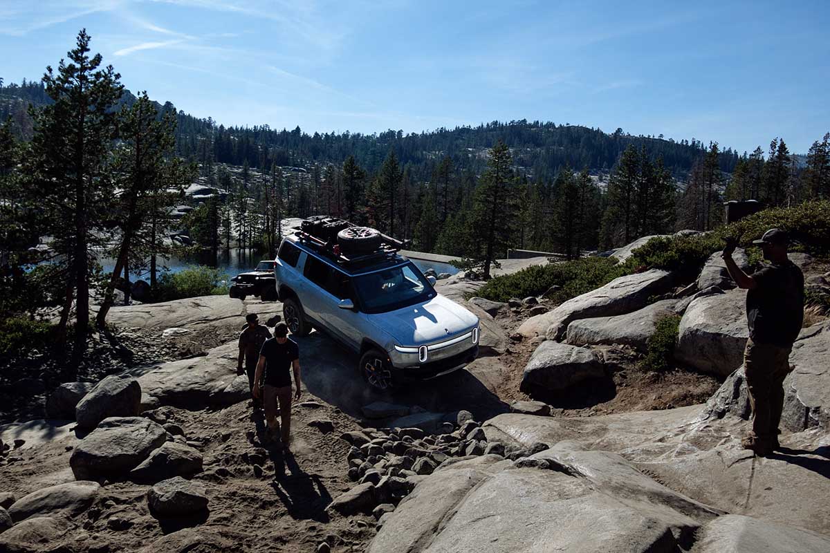 According to the Rubicon Trail Foundation, it’s the first production EV to complete the trail, located near Lake Tahoe and widely considered one of the most challenging off-road trails in North America. To pull it off, Rivian’s test and development team used the R1S, which we called “a serious off-roader” in our review last year.