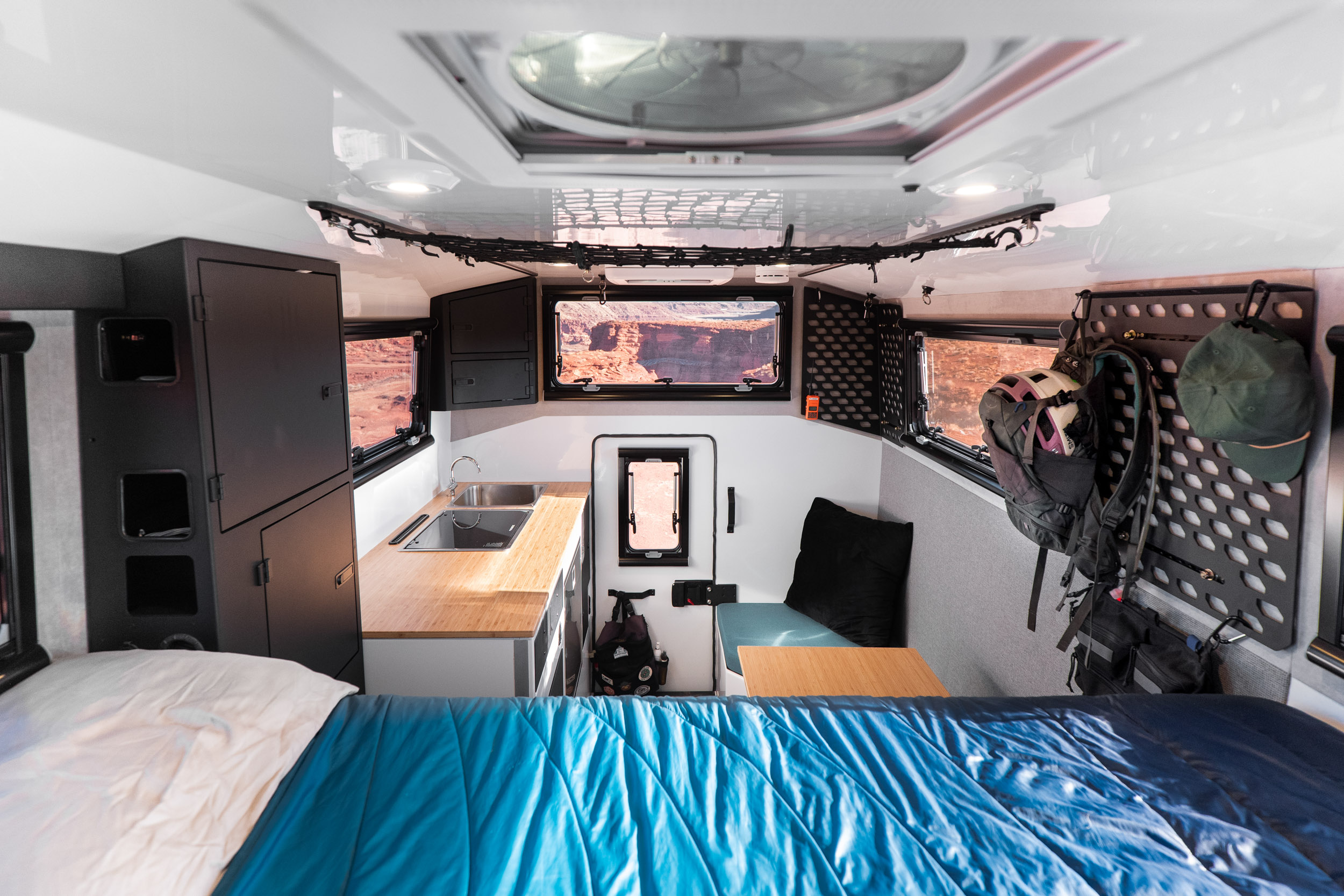 “360-degree views is our thing,” Panich said. “A lot of hard-side campers feel cramped and cluttered on the inside, and we wanted to keep things open and airy.”
