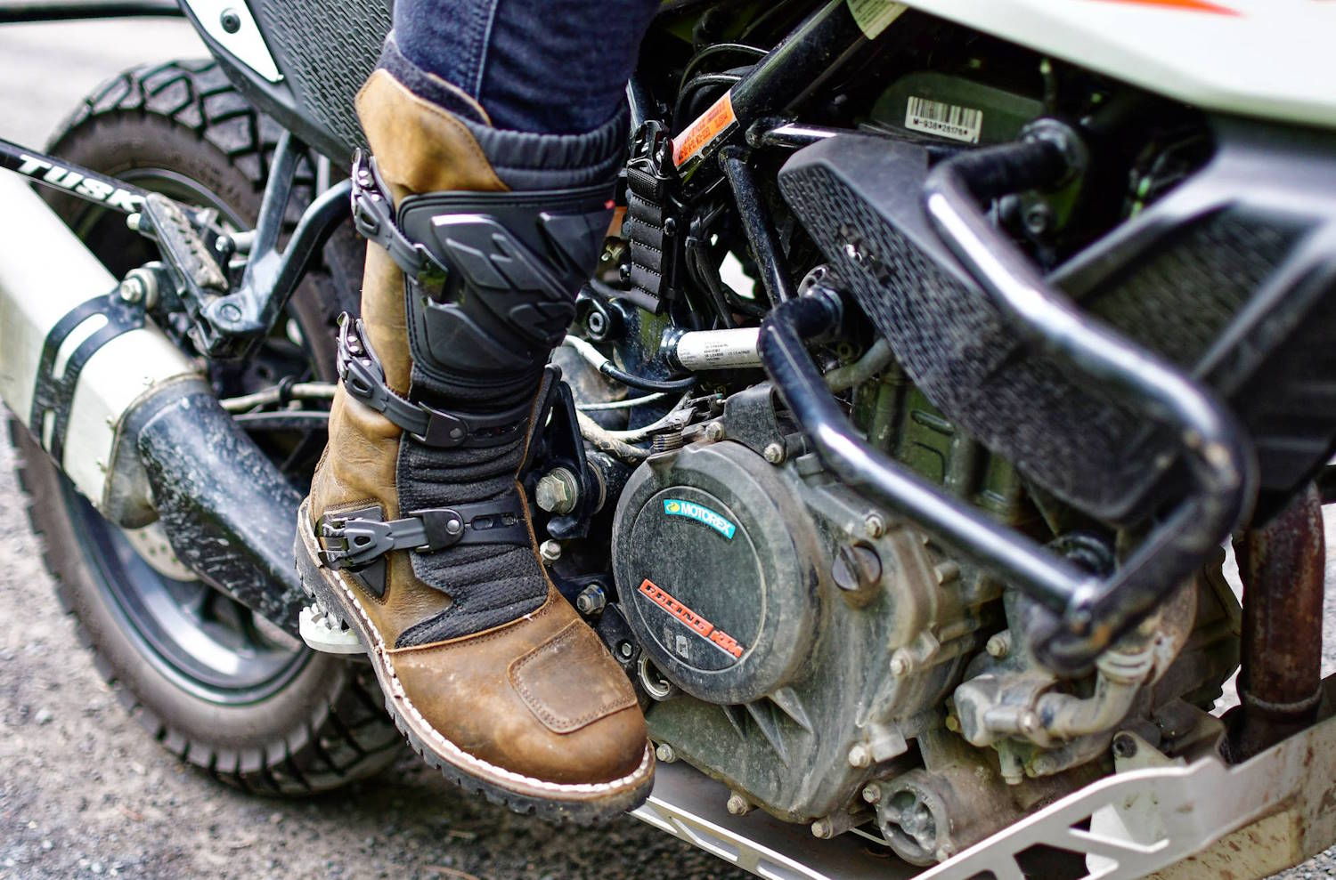 Everyday motorcycle boots like the TCX Drifter are suitable companions for most average rides from town to trail. They’re not the burliest, tout a CE Level 2 certification, and can handle average adventure rides from mellow dirt to twisting double-track.