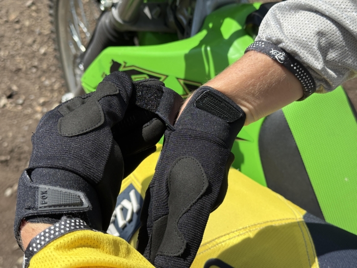 We agree, the KLIM Dakar Pro ($75) breaks with the mold of a lightweight, dirt bike glove. The boxed finger construction leaves more volume for each digit. Even though they feel snug, you’ve got exceptional control for braking and fanning the clutch. As far as bar feel goes, we found the goatskin leather palm to be better than other natural or synthetic leathers.
