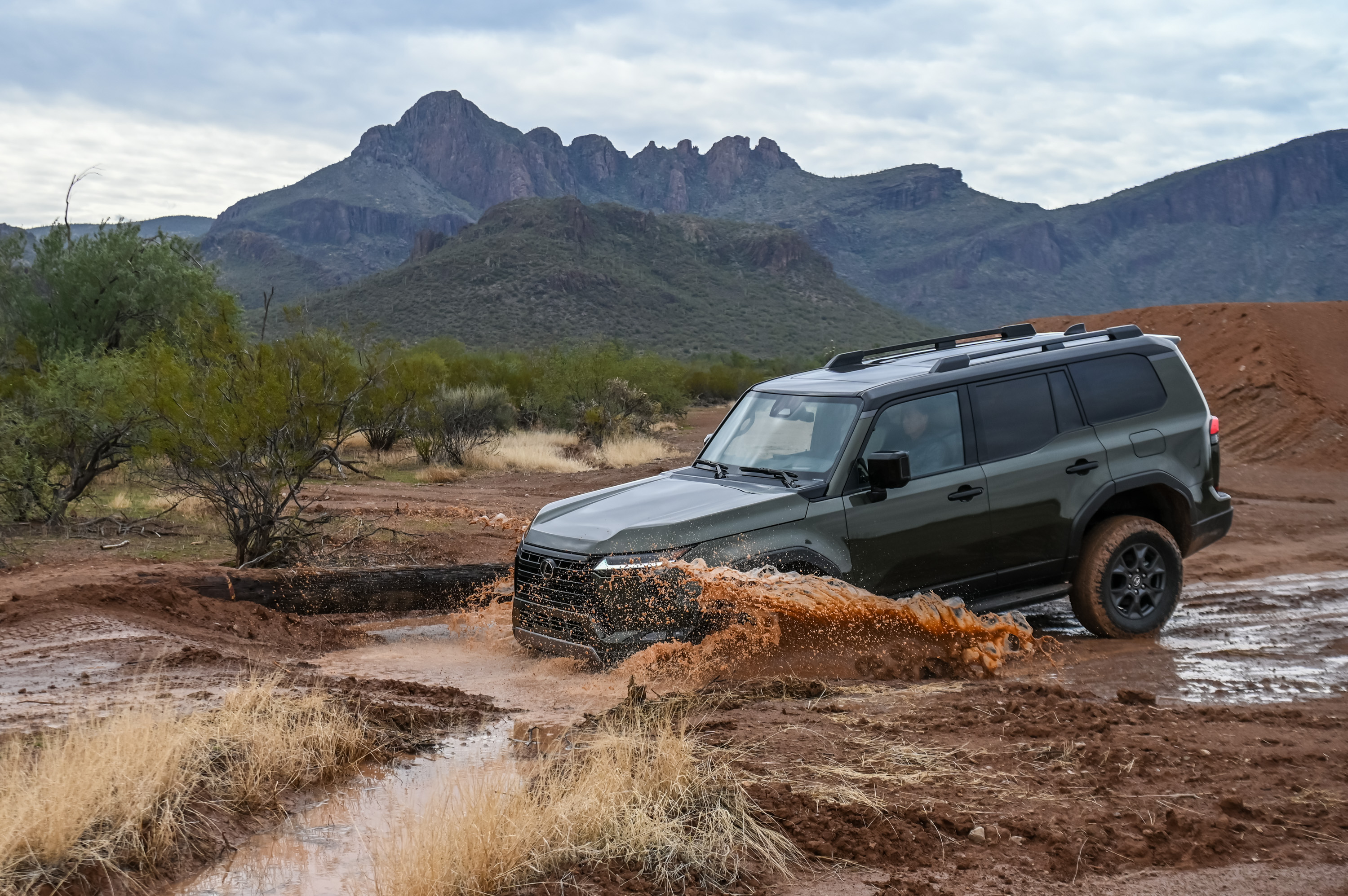 But the GX 550 Overtrail will also give you seats designed to keep you in place on the trail. Adaptive suspension is standard, and it has the Lexus eKDSS electric virtual sway bar disconnect that improves its off-road ride and gives you 24 inches of travel for the 33-inch Toyo all-terrain tires.