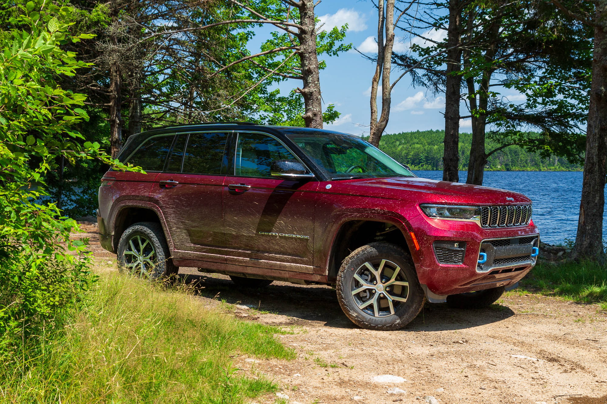 PHEV power doesn’t compromise the go-anywhere Jeep, which still has a low-range transfer case and an available limited-slip rear differential. The ultimate off-road Grand Cherokee, the taller, air-suspension, and all-terrain-tire-equipped Trailhawk, is exclusively sold with the 4xe system.