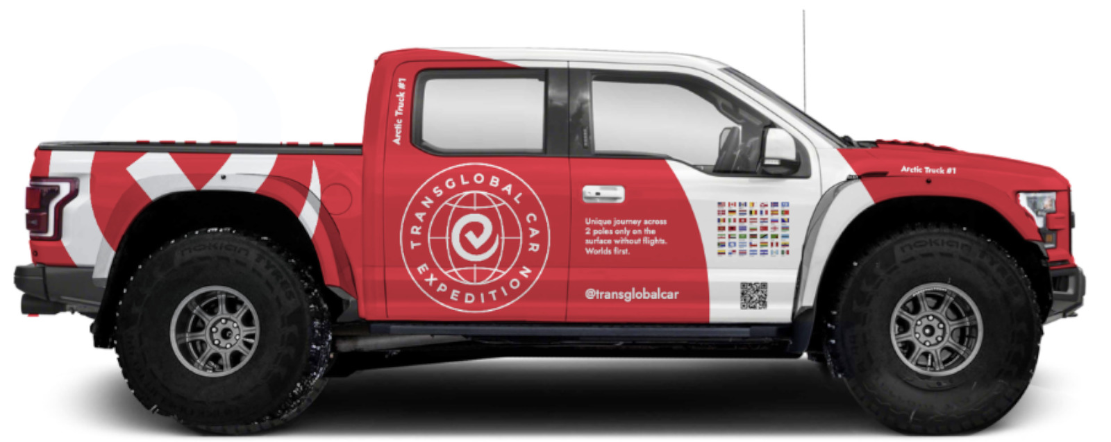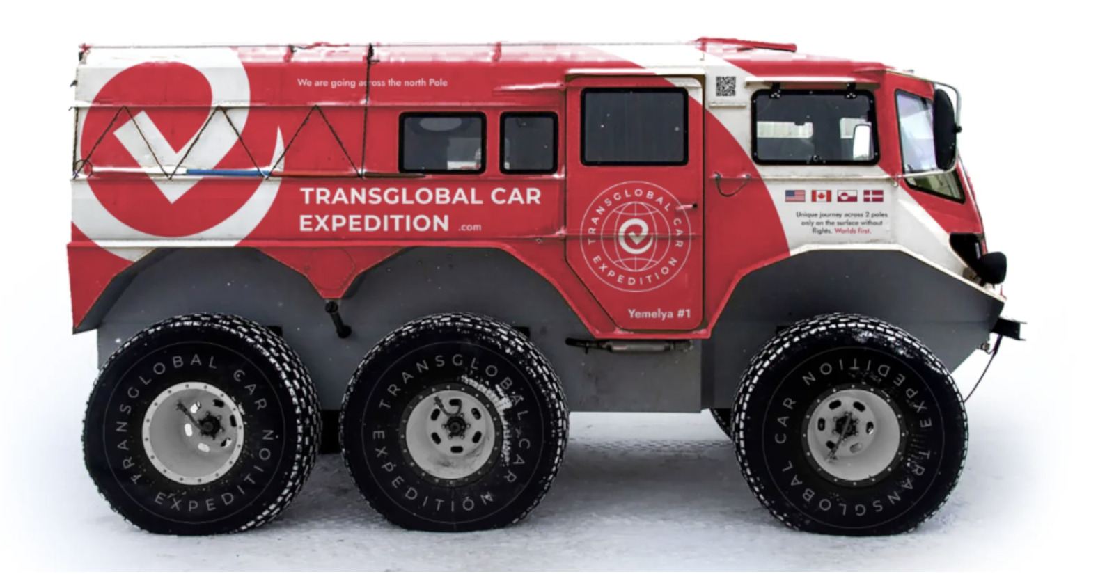 The expedition drove four types of vehicles: the aforementioned Yemelya for use at the poles, and the more road-ready versions of Ford trucks, which Arctic Trucks modified for use in the extreme conditions.