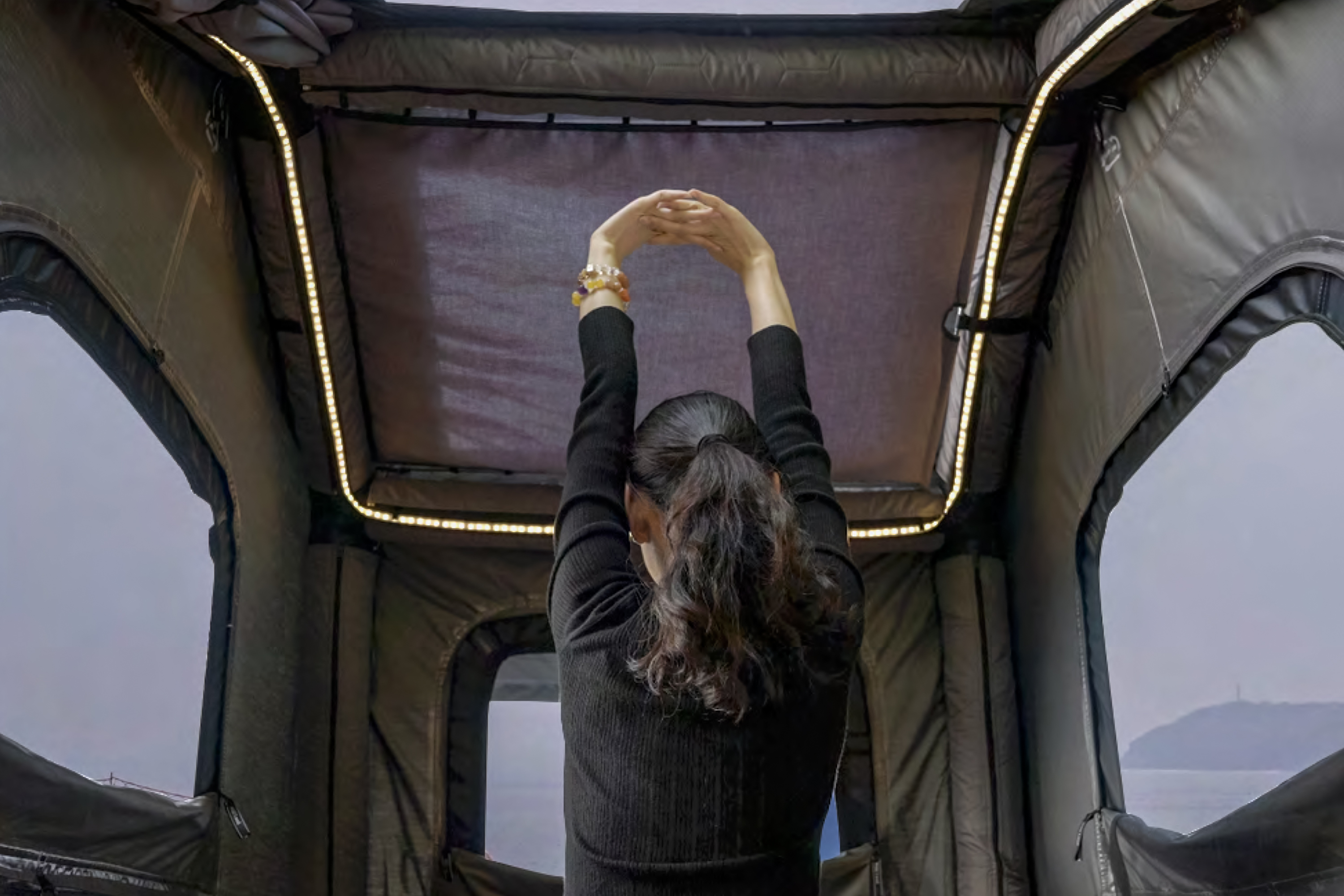The tent comes with a cover and mattress. It also comes with a ladder and integrated LED lighting. More accessories are already said to be in the works.