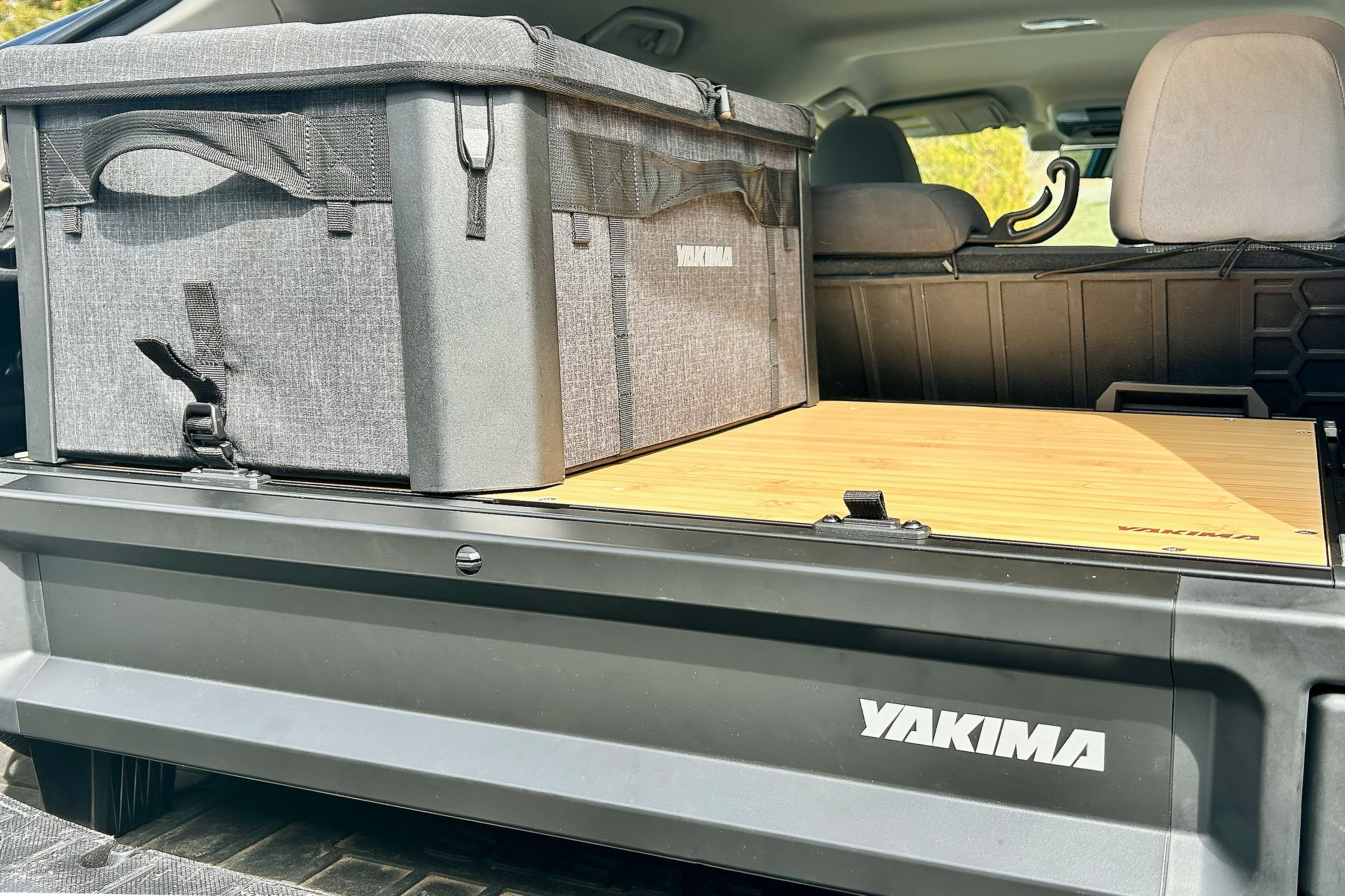 With the track system, you can swap out totes and drawers, or pre-pack gear crates beforehand. Then, only load up what you need. Yakima integrated everything; the tie-down components, the track system, even optional add-ons like the slide-out for a Dometic cooler and WorkSpace. Cost-wise compared to other modular drawer systems, it’s also a super price.