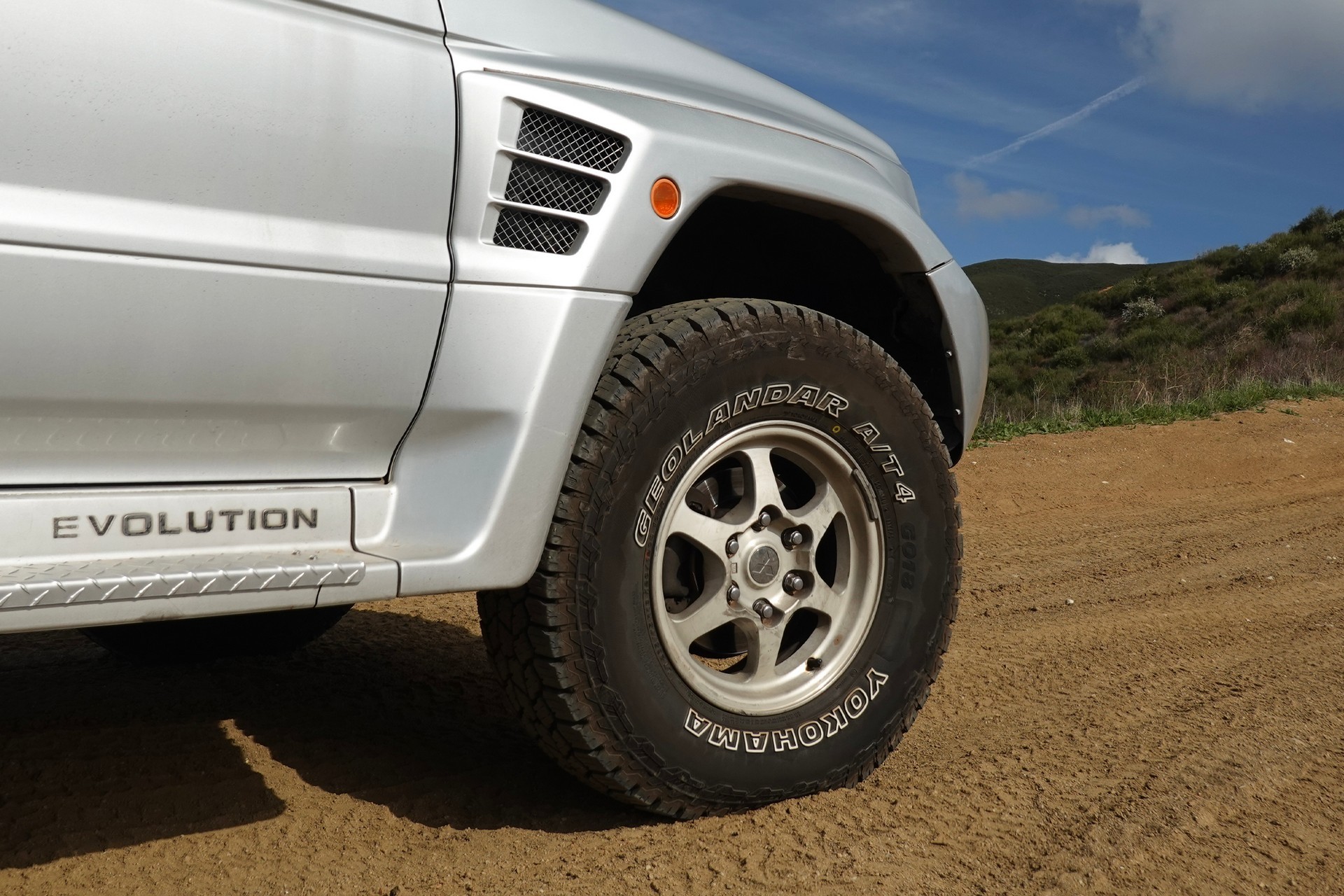 Still, it seemed appropriate to mount Geolandars on my PajEvo once I imported it, because most of the homologation cars sold new for the Japanese domestic market (JDM) ride on Geolandar HTs. So I happily took a set of G015s in the LT265/75R16 size, or 1 inch taller than the factory spec. This emphasized the tall, skinny aesthetic that looks so good on old SUVs.