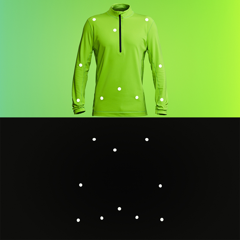 Vollebak tackles high-visibility with the $195 Nano Meter 555 midlayer. It employs “the most visible color on earth,” a shade of green that reflects light at 555 nanometers (hence the name). For nighttime, the brand added reflective dots patterned after motion-capture technology, to maximize visibility.