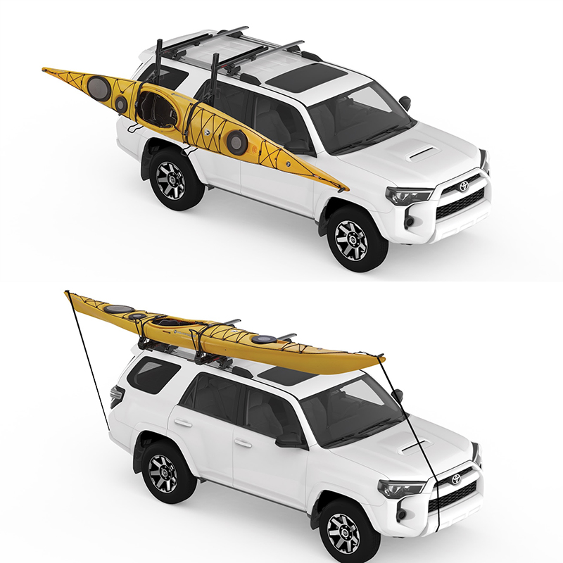Forget hoisting, load your watercrafts onto rooftop racks without the height hassle. Yakima introduces the ShowDown, a lift-and-tilt sideloading rack. Designed for SUPs and kayaks, the $450, 21-pound ShowDown has hinged arms that allows you to strap in your gear, lift it, slide it, and lock it without grabbing the step stool.