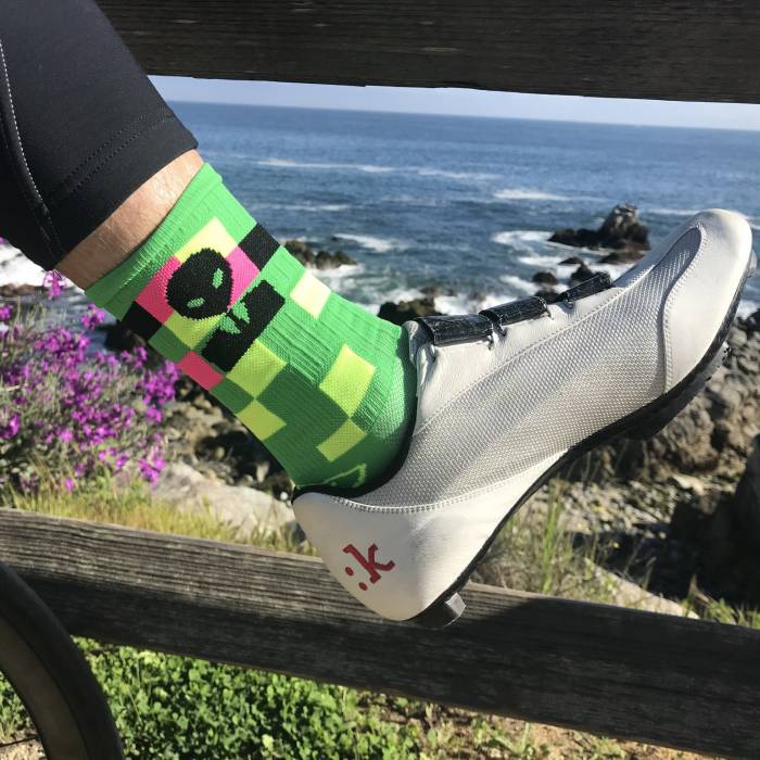 Ride in socks emblazoned with fun, alien-themed patterns from Alien Socks. A new brand, Alien Socks are woven in the U.S. with a blend of nylon, spandex, and polypropylene. All of its offerings have one-of-a-kind designs with aliens. They offer a compression fit and ventilate well when pushing during workouts. While the brand’s theme sure turns heads, after wearing the socks for a few months, we found alien socks performed impressively for such a low price point. One pair costs $10.