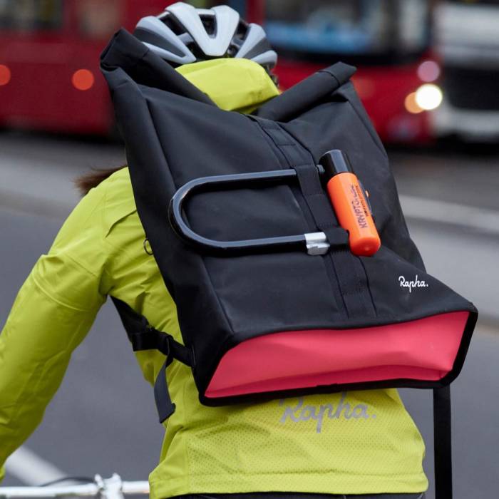 Rapha enters a new product category with the launch of several bags: The Roll Top Backpack, Bar Bag, and Day Bag. The Roll Top Backpack is an essentials-focused bag with limited space in a minimal design. The Day Bag is designed for an entire kit: helmet, shoes, and apparel included. Lastly, the Bar Bag is waterproof and holds 2 L worth of gear like a multi-tool, spare tube, light, and more. The Day Bag costs $110, the Roll Top Backpack $135, and the Bar Bag $65.