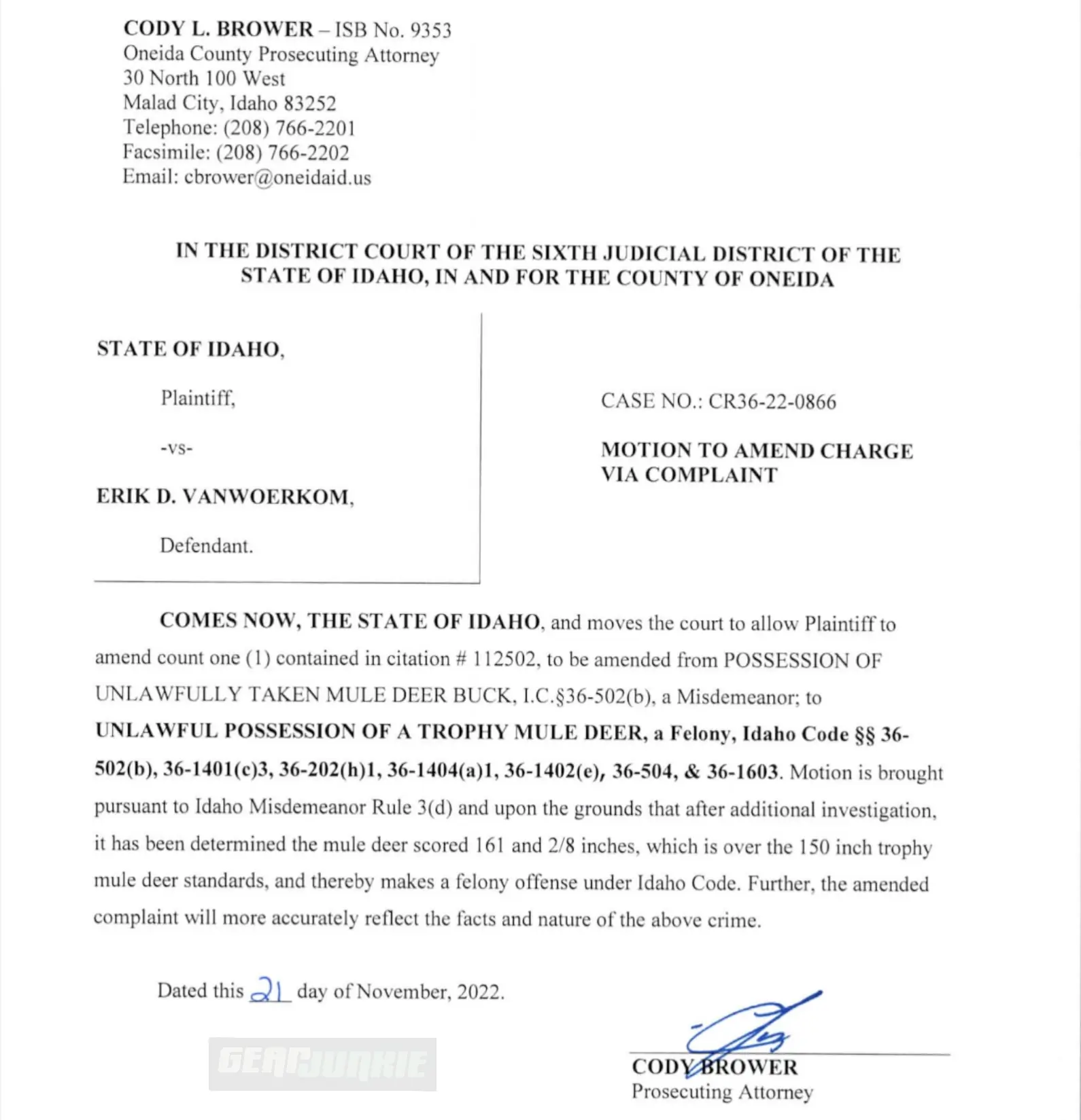 Both charges had initially been marked as misdemeanors, but Van Woerkom’s situation was about to change. The citations issued by Idaho Fish and Game officials included a note that said, “To wit: trophy mule deer buck.”