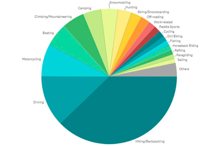 Other big SOS increases came from climbing/mountaineering and fishing. Common activities for SOS calls also include boating, snowmobiling, camping, hunting, skiing/snowboarding, and off-roading.