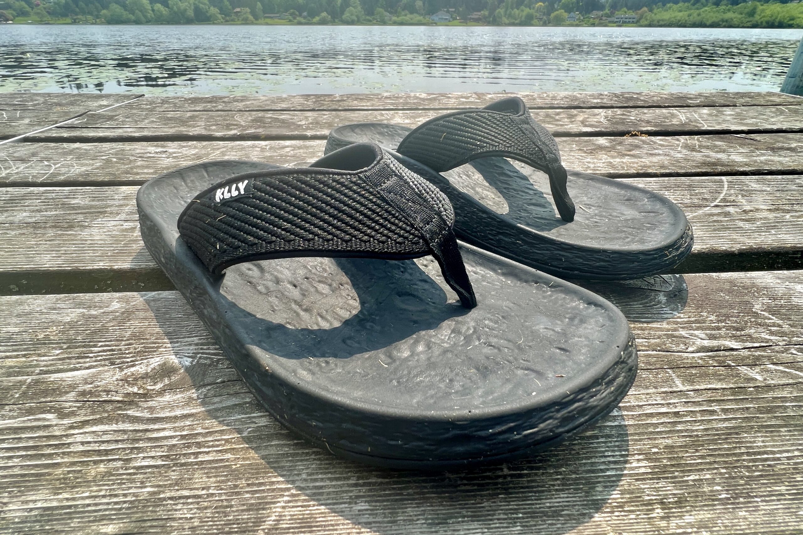 KLLY, which are now available direct to consumers in the U.S. and Canada, arrived on my doorstep yesterday, and out of the box I knew they’d become favorites. The light, cushy sole is thick without being bulky. The straps are sturdy and soft, lined with foam and rooted securely in the sole. The fit feels unimposing and natural, while at the same time stout, and a walk around the house in them feels better than going barefoot.