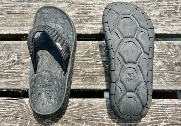 When the founders realized that the material underwent a plasticization process placed under heat, pressure, and time, they inadvertently stumbled upon a new material — perfect for making flip-flops. Roll that material into a pair of KLLY sandals, and Slater is essentially lessening the surf industry’s carbon footprint.