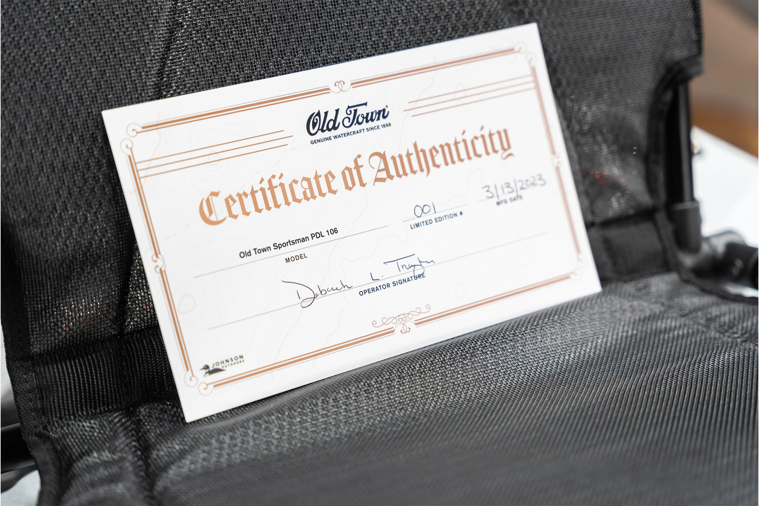 Also in the spirit of its 125 years, Old Town made 125 of each available model. Each limited-edition boat comes with a certificate of authenticity, and carries a stamp with an identifying number.