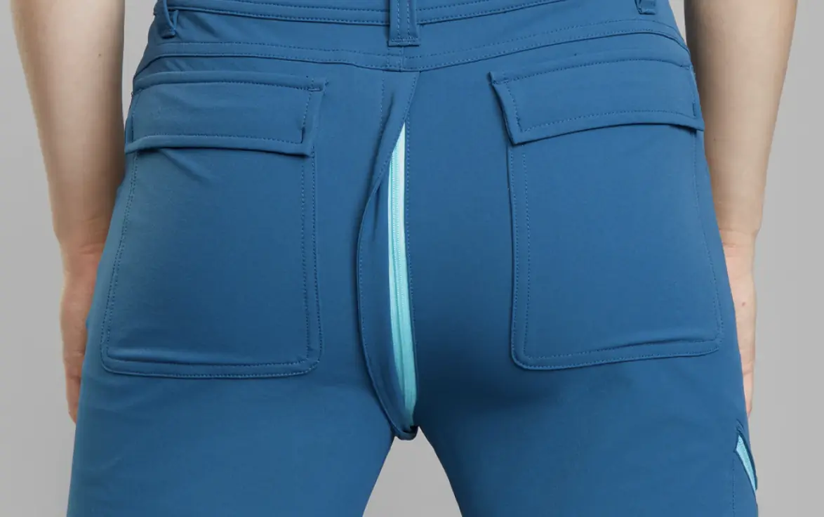 We’ll rewind. For readers not familiar with Gnara (formerly SheFly), the brand invented a special zipper not just at the fly, but that wraps around the entire crotch and bum length of the pant. The result is that peeing outside is way, way easier.