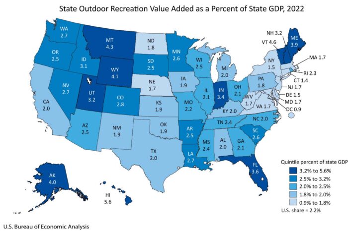 “The BEA report puts data behind what we’ve always known, that in addition to improving Americans’ quality of life, outdoor recreation is a major economic driver,” Glenn Hughes, president of the American Sportfishing Association, said in the press release. “To continue growing our sector and the millions of jobs it produces, policymakers must support sound public land and natural resource policy that facilitates access to the great outdoors.”