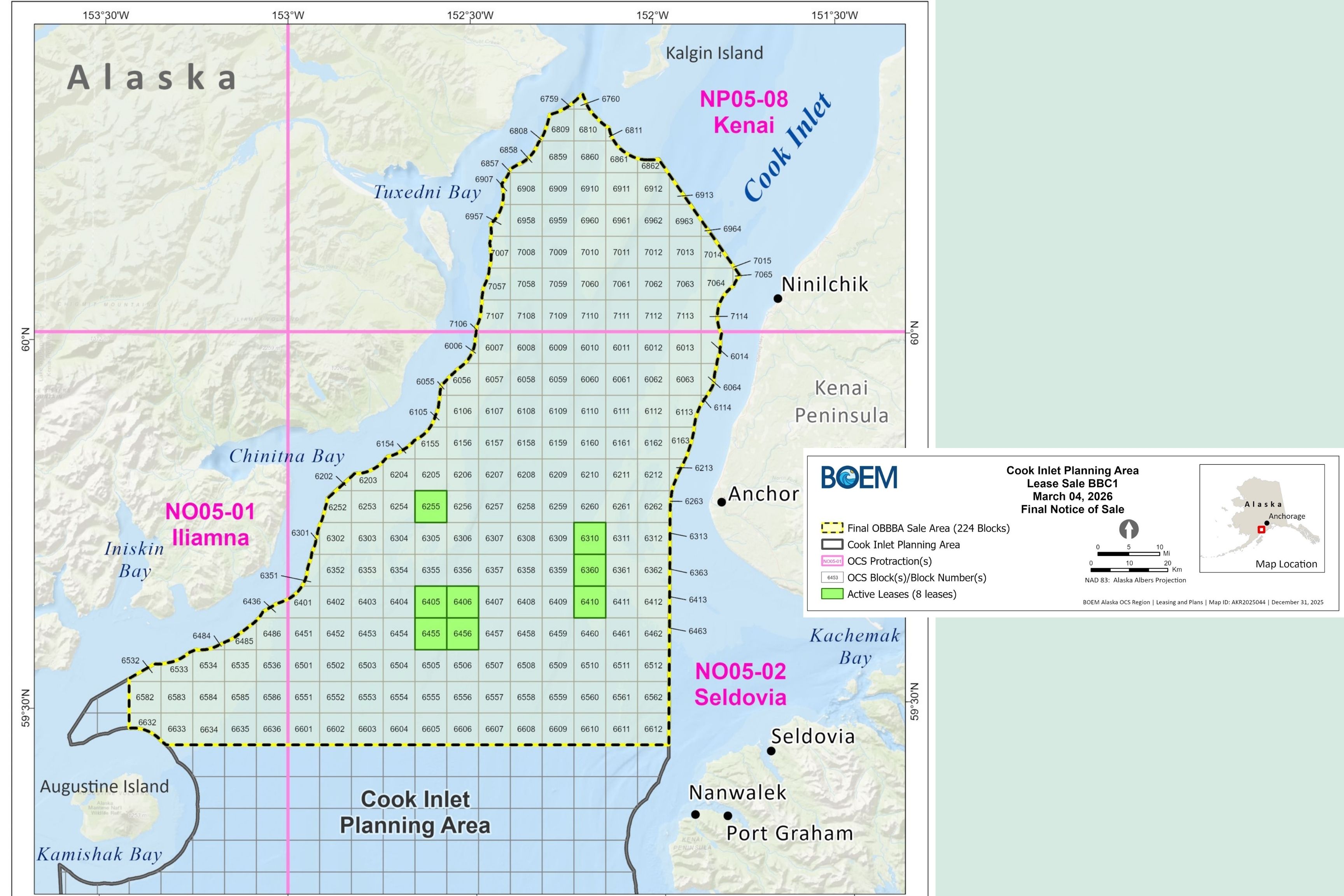 The One Big Beautiful Bill, passed in 2025, required that there be a series of six sales from now until 2032, leasing offshore areas in the Cook Inlet to oil and natural gas companies. This is part of President Trump’s focus on expanding energy production in the United States.