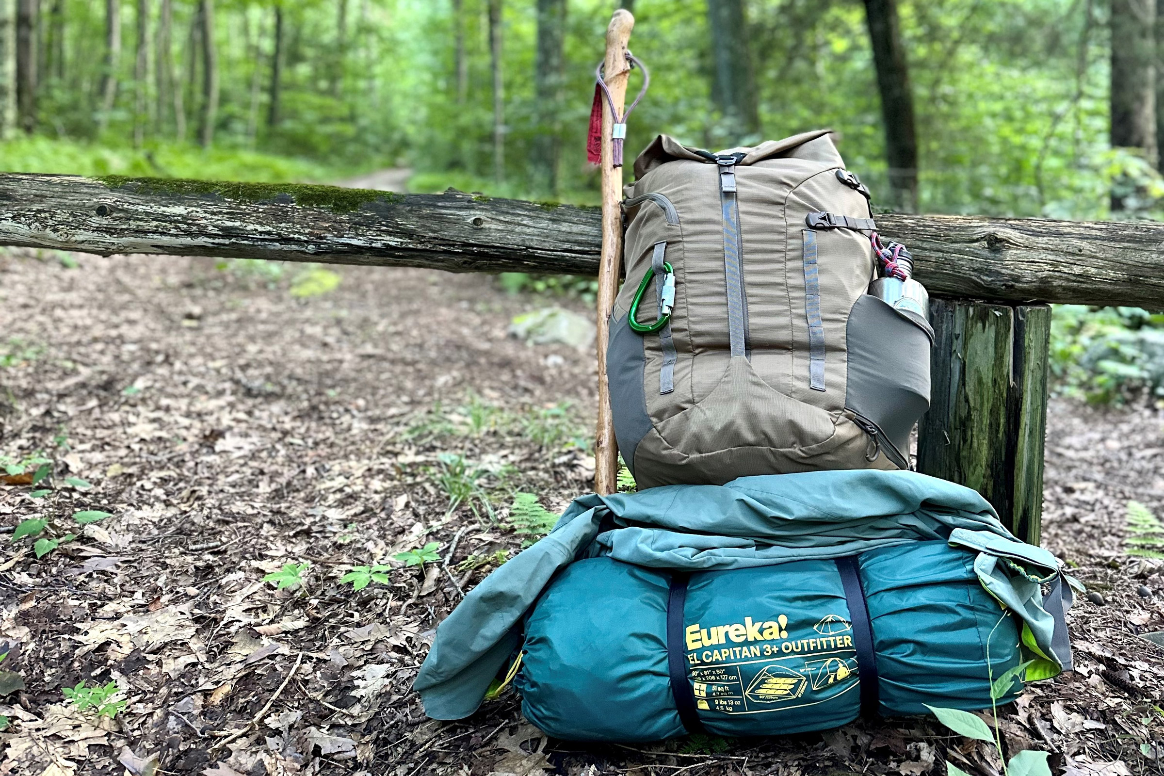 I stuffed my Sierra Designs Backcountry Bed inside the Commander Lite pack and just lashed my Eureka El Capitan 3+ Outfitter to the outside. That way, I was still relatively stable on the trail and opened up more space inside the pack for other gear.