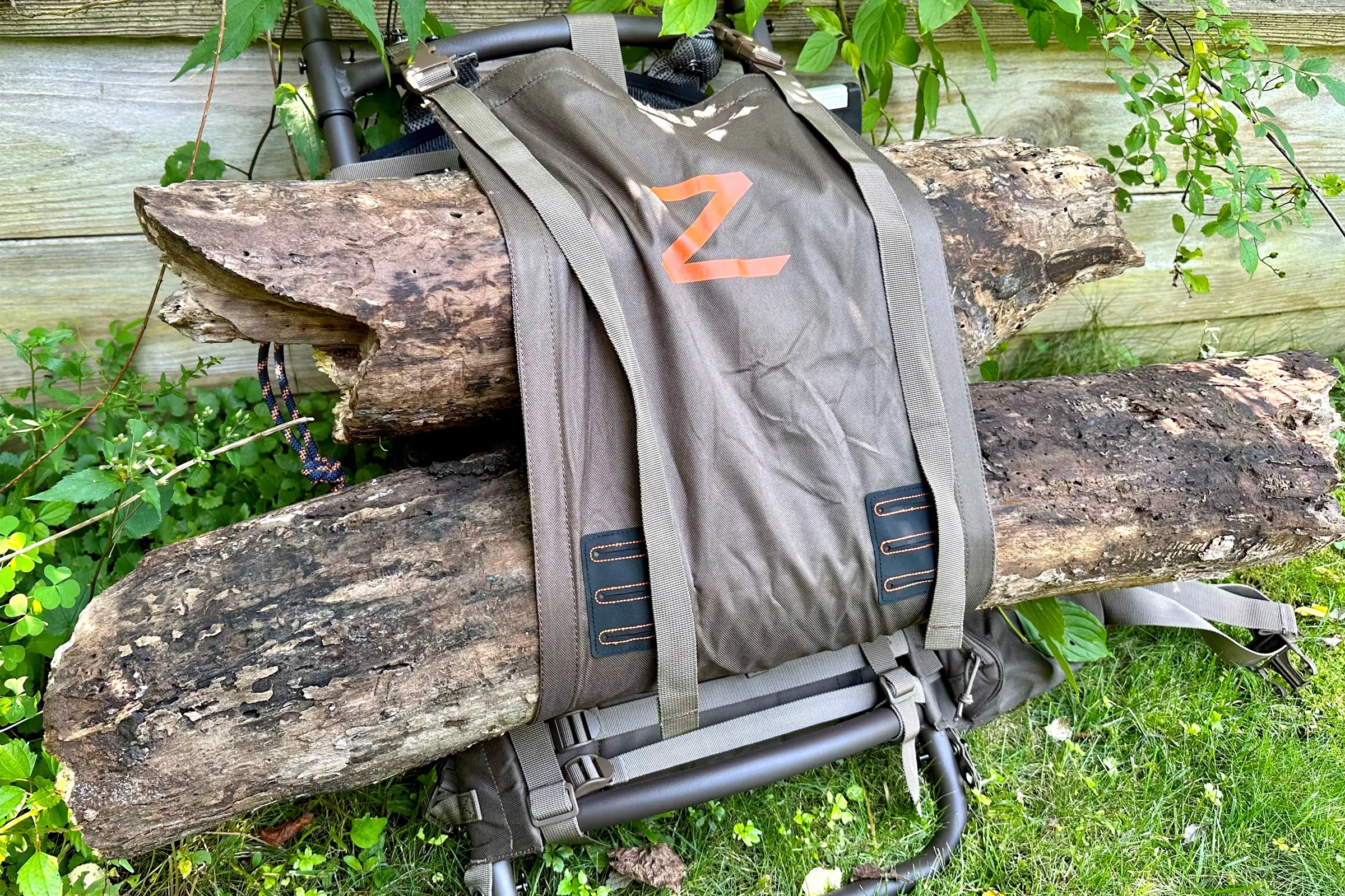 For example, the frame has a removable fabric sling attached to it. This is in place of the metal meat shelf most hunting-oriented external-frame packs include. Using this sling and the frame only, one could haul wood back to camp with ease. And I don’t mean an armful. I’m talking about carrying back a full night’s worth of wood.