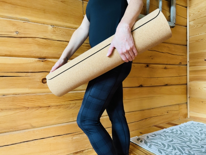 Although the Asivana Flux Cork Mat is 7 pounds, it feels like more. The mat is very dense, which is what makes it comfortable when you’re in a class or an outdoor setting, but that density comes as a result of weight.
