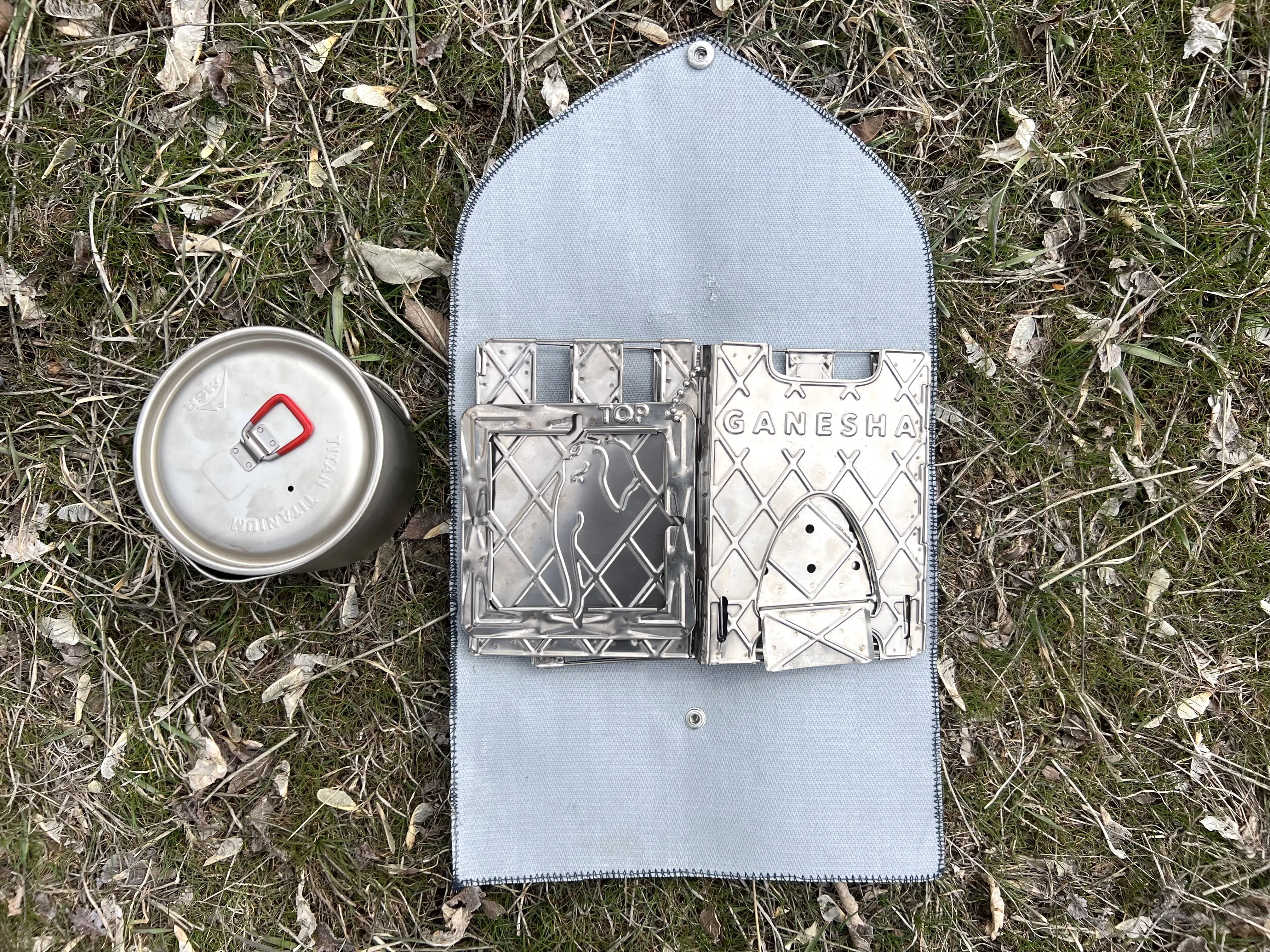 The provided fire-retardant ground cloth offers a barrier so you don’t scorch the earth wherever you set up to cook. It doubles as a carrying case to keep the insides of your pack marginally safe from char and smudging. Although, I’ll tell you from experience it does little to contain the smell: your pack will smell like campfire when carrying the Ganesha around.