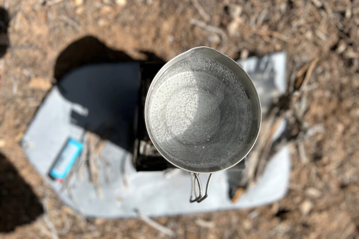 Ganesha claims that its Ultralight Stove can boil water in 4-6 minutes. Obviously, that is dependent on how big of a fire you get going, and how well you tend to it. In my experience, it’s usually closer to the 6-minute end of that spectrum — and it’s taken as long as 10-15 minutes.