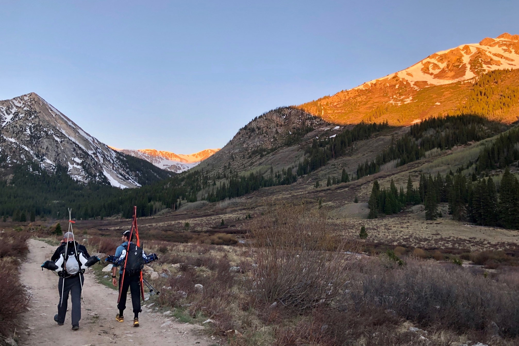 It was 4 a.m. and freezing. My breath clouded my headlight beam as I heaved my pack onto my shoulders. I shined the light over to my two ski partners, Rachel and Quinn. They were on the ground furiously taping their feet. Quinn had a few suspect friction blister spots covered; Rachel had layered on what looked like low-cut tape socks. We were in for a long day in ski-touring boots ready to encounter the full spectrum of spring weather.