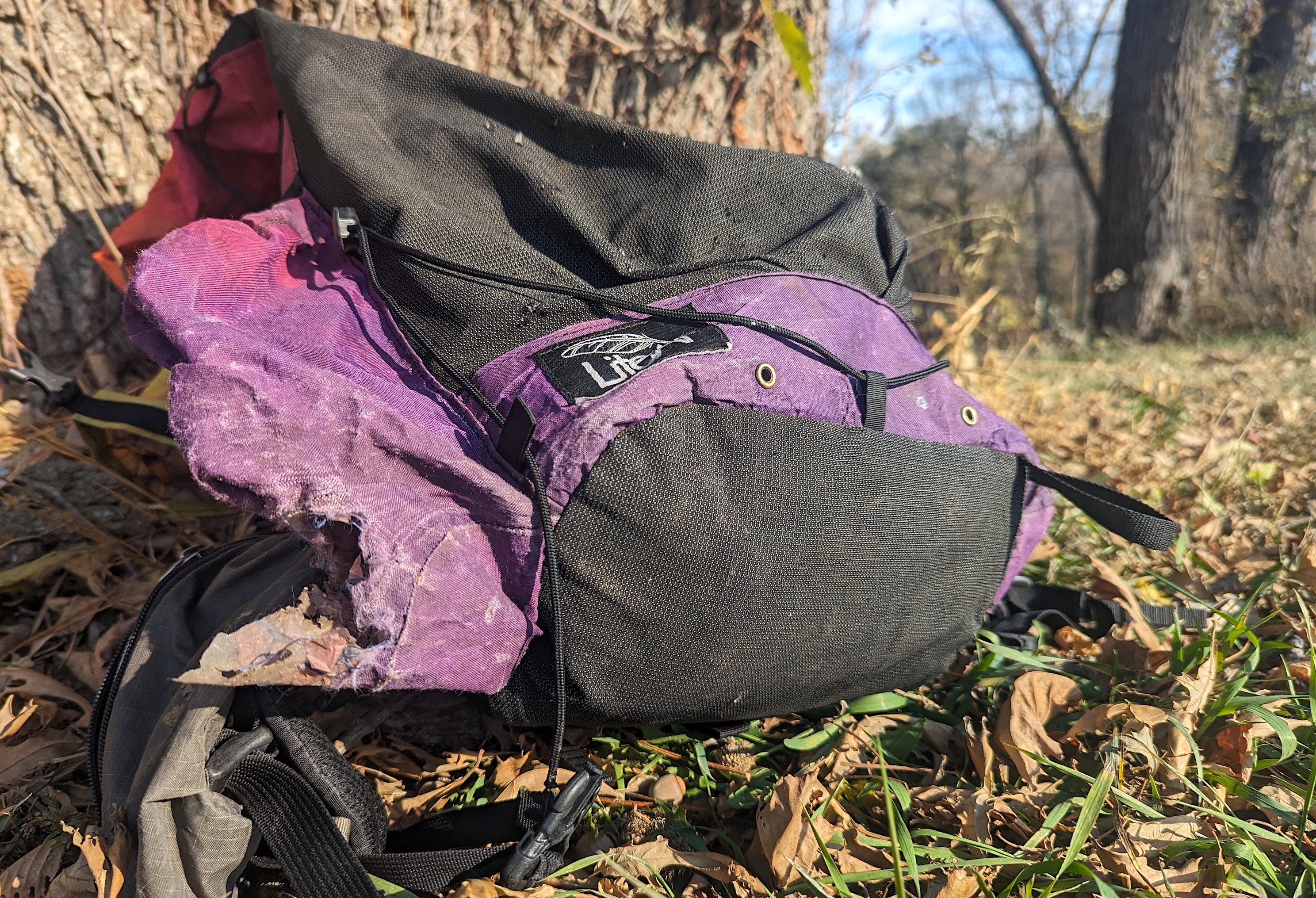 My pack at this point had put up with 1,200 miles of damage, the water bottle pockets were beginning to show noticeable wear, and by the end of the trail, only one of my water bottle pockets was fully intact when I summited Mt. Katahdin in Maine. The UltraStretch mesh has some punctures from scrambling down wet rocks, and there are abrasion marks across the body of the pack.