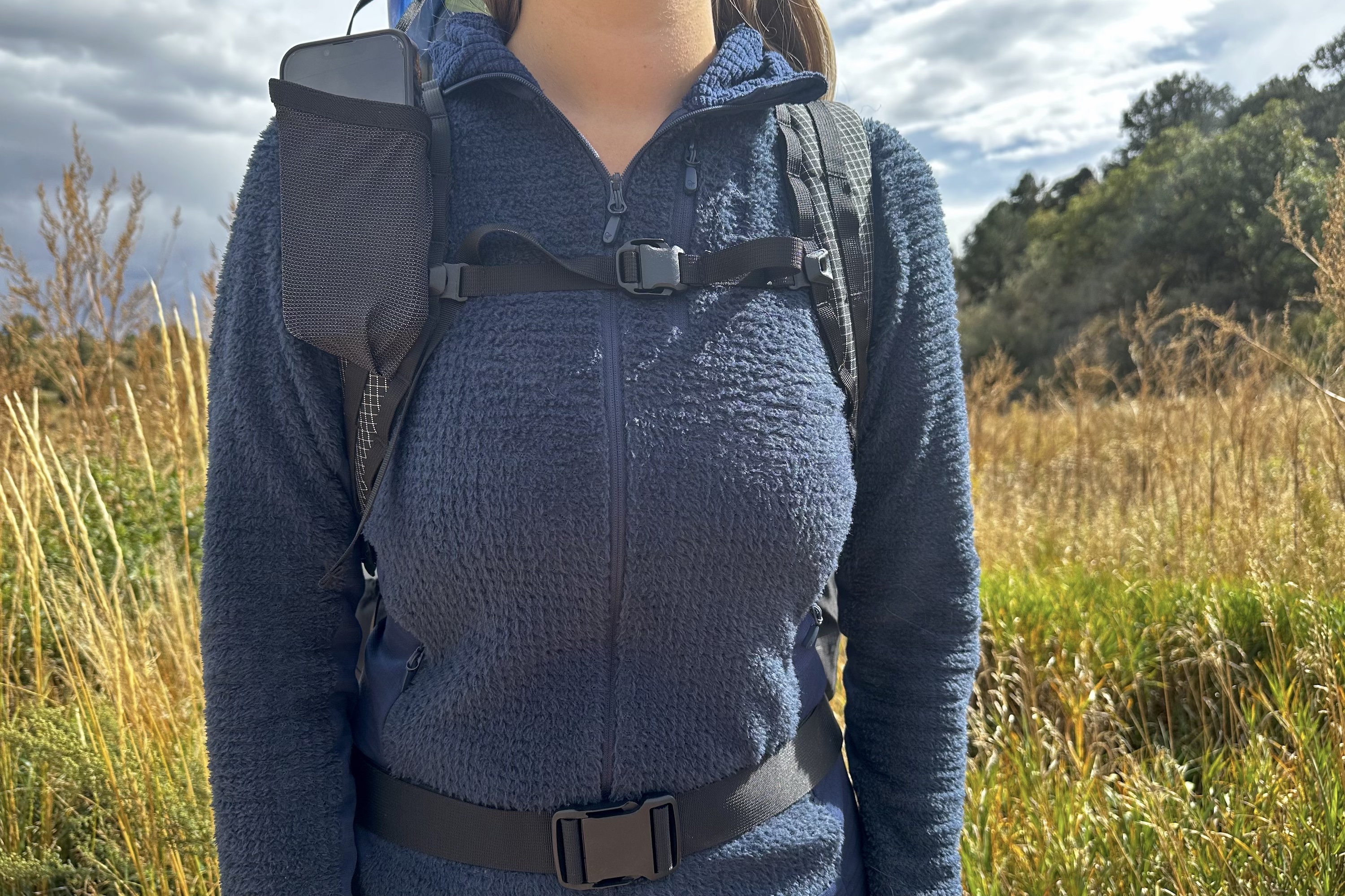 One area of improvement is the adjustable slide clip for the removable sternum strap — it clipped in and out easily on one side, but on the side with the phone pocket where there are four or five points of adjustment, it was really hard to physically slide out and remove due to the thicker and excess fabric.