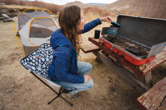 Living in Bishop, Calif., on the flanks of the Sierra Nevada mountains, Miya spends most of her summers backpacking out to alpine climbing objectives, and knows how nice it is to have a comfortable seat to lounge in at the end of a long hiking day, but knows that finding a chair that won’t be cumbersome to pack is also crucial.