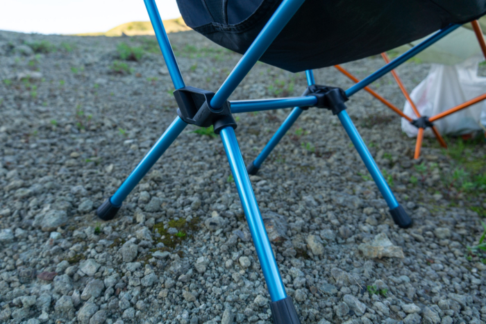 Gone are the fabric pole sleeves that used to hold the DAC poles (a favorite of ours), and now nylon hubs interface in a much more durable connection. This is the same direction that chairs like the NEMO Moonlite have gone, and we think it’s the way forward. Overall durability is improved (some of our most well-loved chairs have failed at this interface), and the connection is more secure. While backpacking chairs are sometimes a bit short, this Helinox is a great height to sit up from — no groaning required.