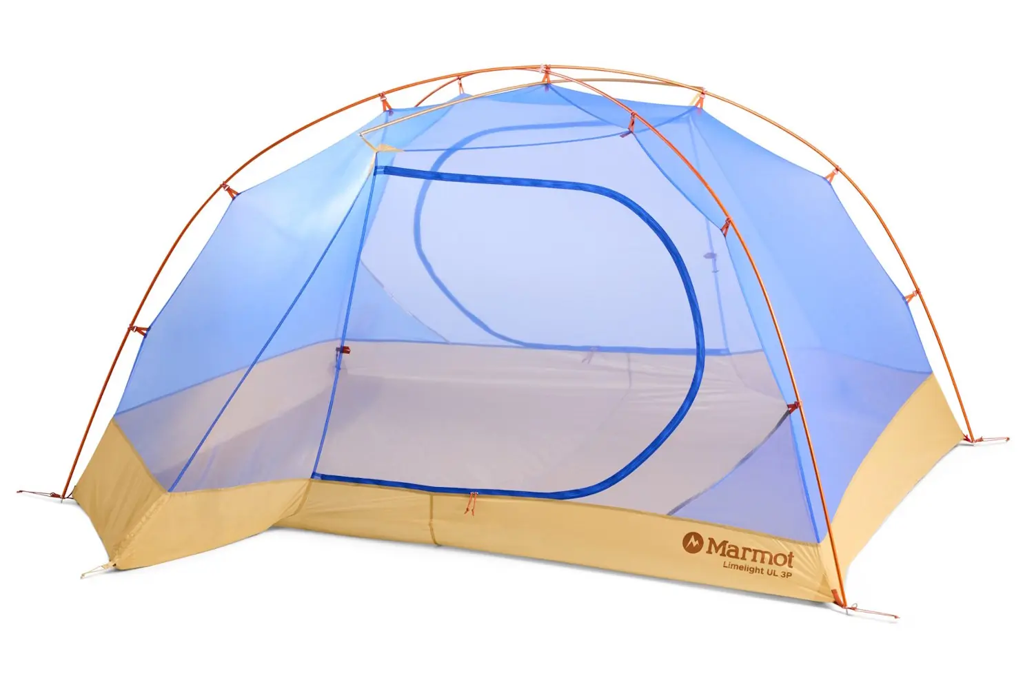 | Marmot Limelight UL 3-Person Tent | $549 | 3 lbs., 9.3 oz. | 46.5 in. | 40.9 sq. ft. | Ripstop nylon floor, ripstop polyester fly | 6.5 sq. ft. |