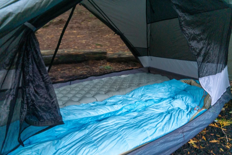 If you are only packing the tent for “just in case” or to mostly store gear, you can downsize to a lighter, more cramped model. Pay attention to the dimensions in the specs from a manufacturer, as they can give you a good idea of how many sleeping pads will fit in it.