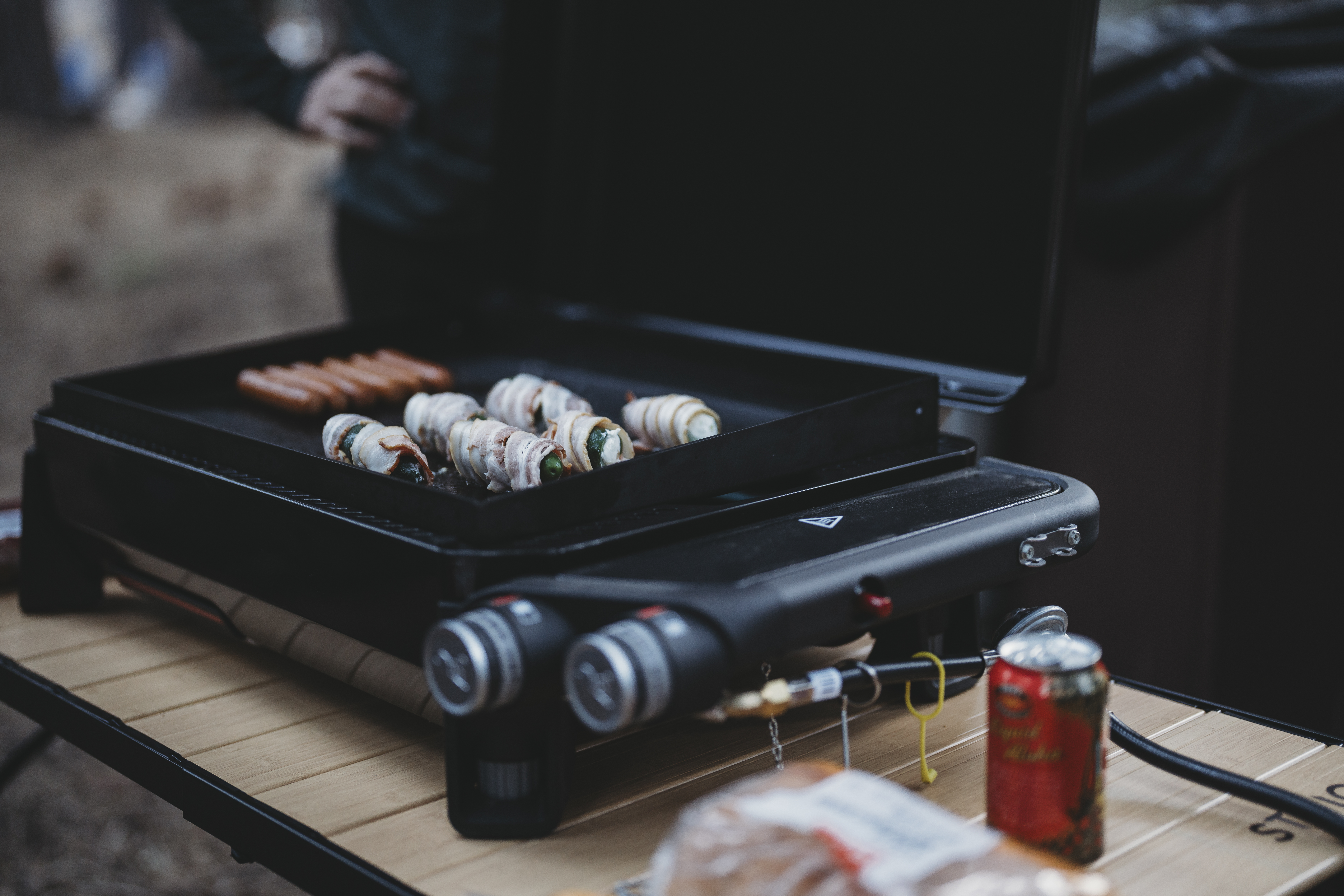 | Camp Chef VersaTop | $190 | 17 x 18 x 8 in. | 224 sq. in | Propane | 15,000 | 24 lbs. |