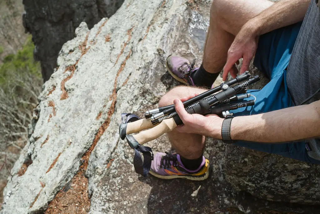 And while some poles will only collapse into themselves, others, like the Trekology Trek-Z 2.0, have independent segments that fold up when collapsed, making them smaller than most collapsible poles. These poles do use more section joints than other poles, which should be a consideration for long-term use. In our testing, however, we’ve yet to see fold-up poles expire prematurely.