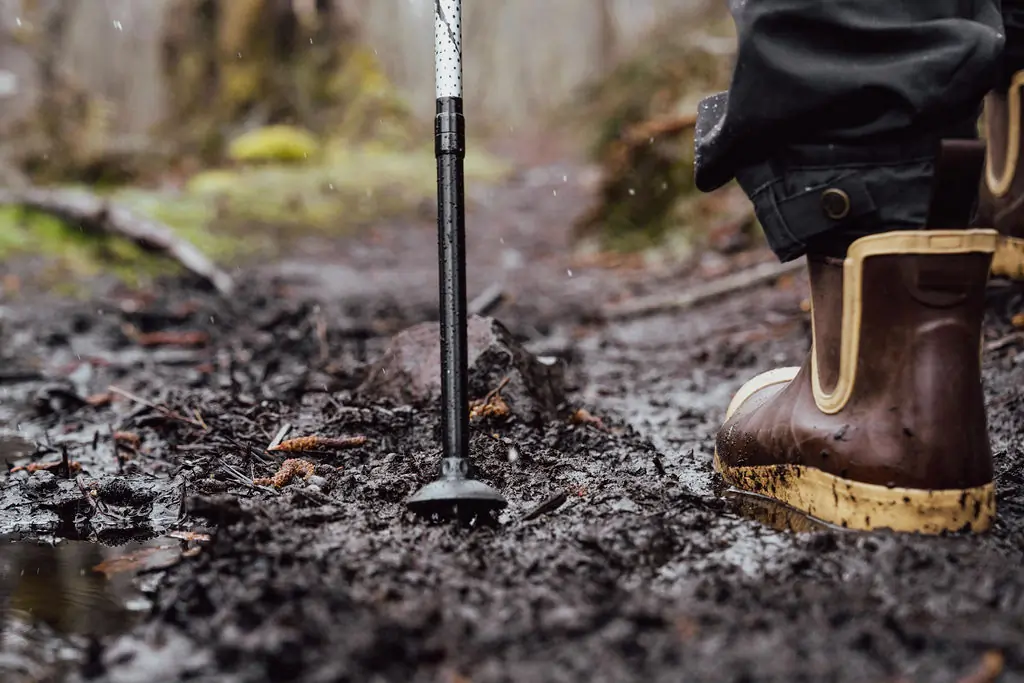 Trekking poles generally come with “mud baskets.” These baskets not only prevent splashing and provide support in mud but can also help when traveling over soft dirt or sand. They are especially beneficial for thru-hikers who will encounter snow on high-elevation passes.