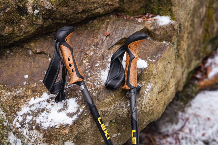 Rounding out these poles are EVA grips with an extension down the shaft for support while sidehilling and two different types of baskets. The snow baskets, in particular, impressed us, as they host a small lip for flicking up risers on ski bindings or snowshoes. These small features make the difference in rugged conditions, and we greatly appreciate them.