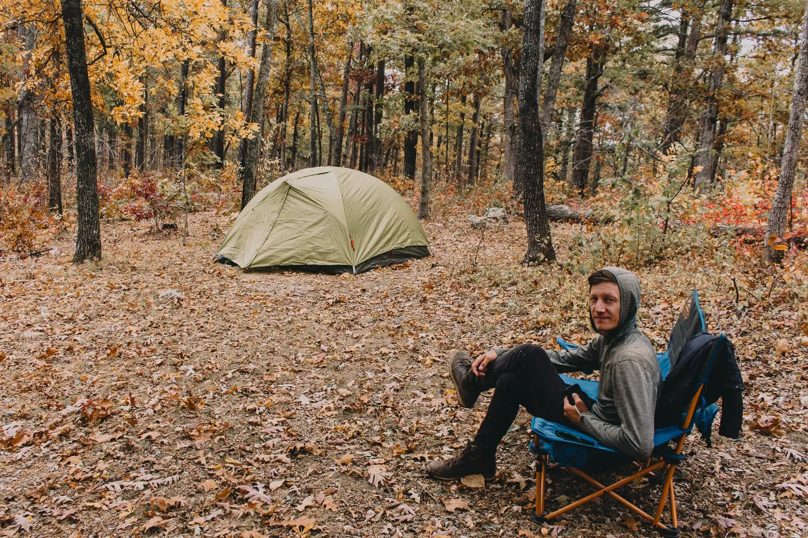 We got an REI Co-op Trail Hut 4 tent. It’s extremely spacious for two people as it fits up to four. At 8 pounds, it’s a heavy tent — but who cares when you’re not packing it in? It’s ideal for what we need it for.