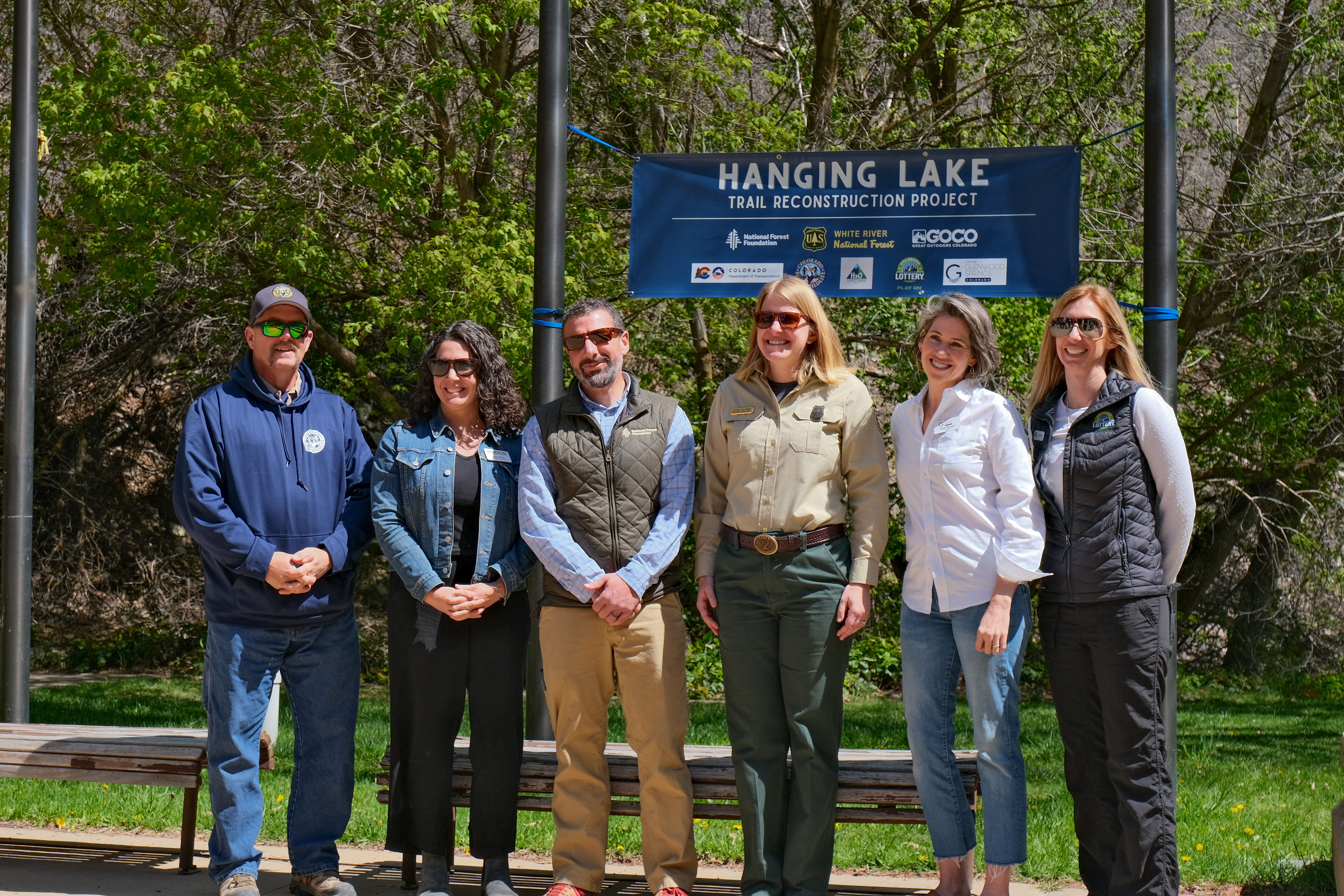 The restoration project’s groundbreaking ceremony was held on May 2 at the trailhead. All the partners for the project were present — the National Forest Foundation (NFF), the City of Glenwood Springs, Get Outside Colorado (GOCO), Colorado Lottery, Colorado Parks and Wildlife, and USFS.