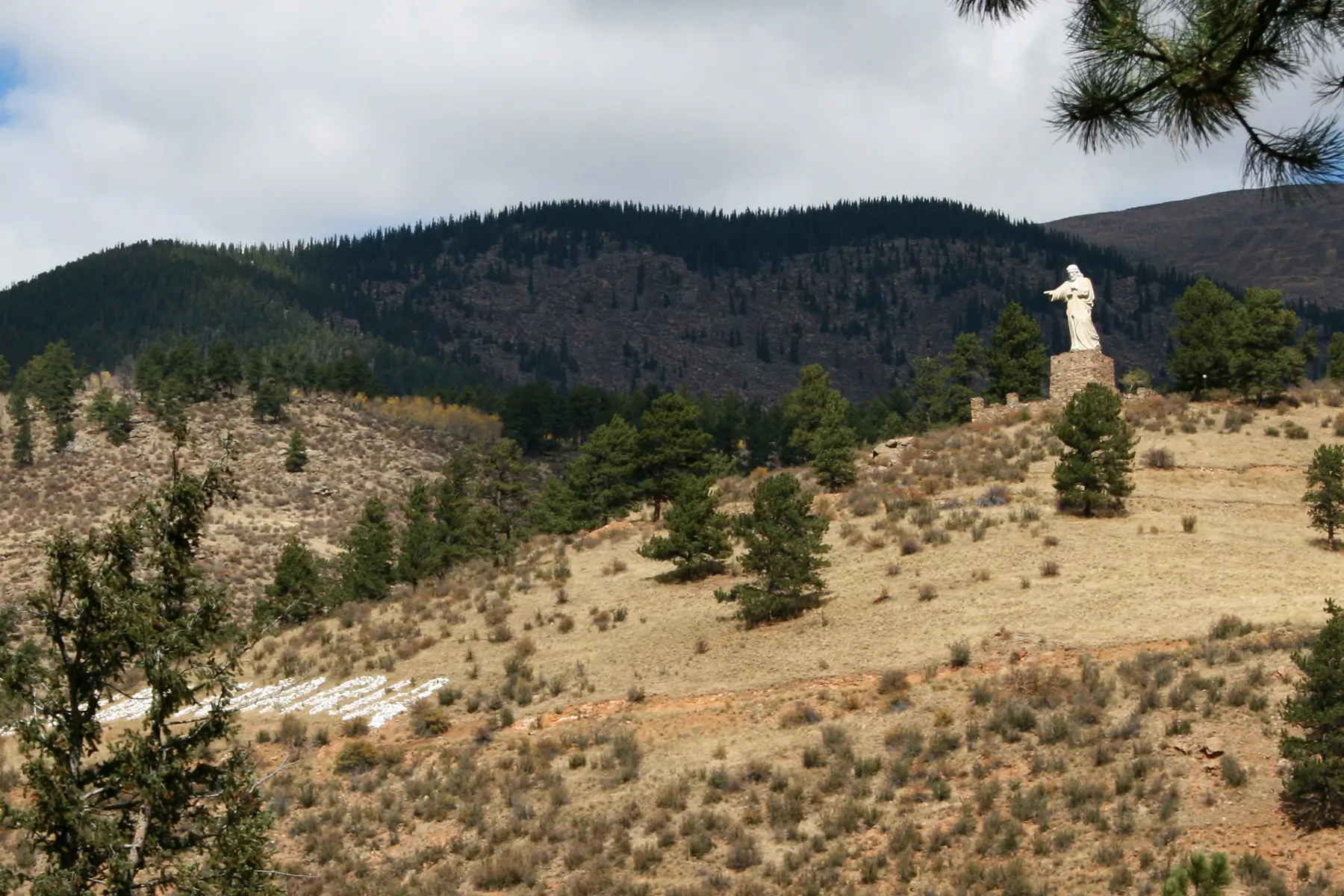 Directions: From Denver, drive up U.S. 285 toward Kenosha Pass. Before the turn-off for Guanella Pass, you’ll pass the Santa Maria Statue of Christ on the right. According to the map, the treasure is located somewhere above the statue, between the Deer Creek and Elk Creek Drainages, which both run off of Mount Logan. You can find an image of the map here.