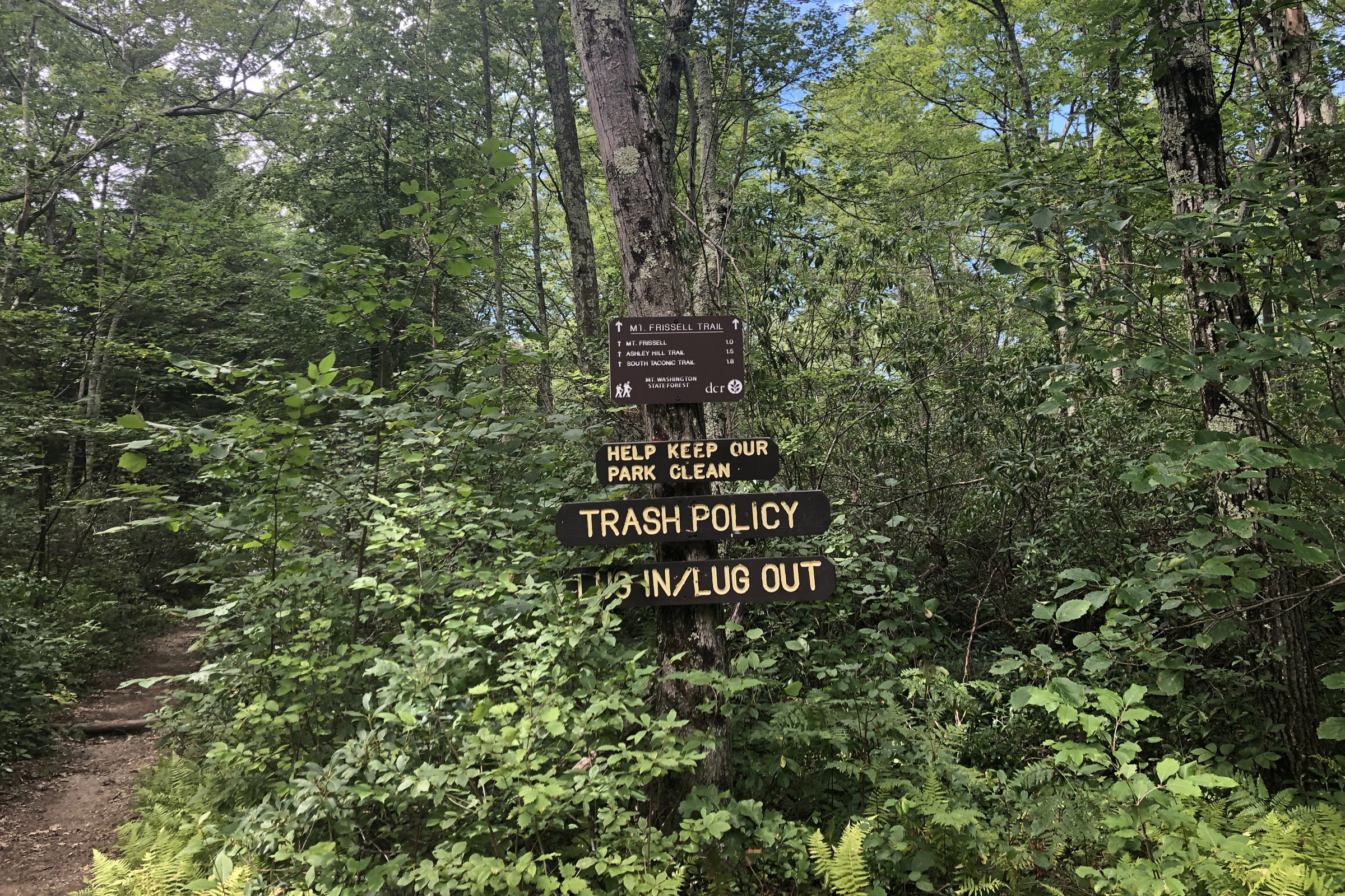 The really cool thing about this hike is that it takes you to the very highest point in all of Connecticut at 2,380 feet. The point isn’t exactly the visual highlight of the day. But it’s a sweet spot right on the border with Massachusetts. In fact, the summit of Mount Frissell itself is in Mass.