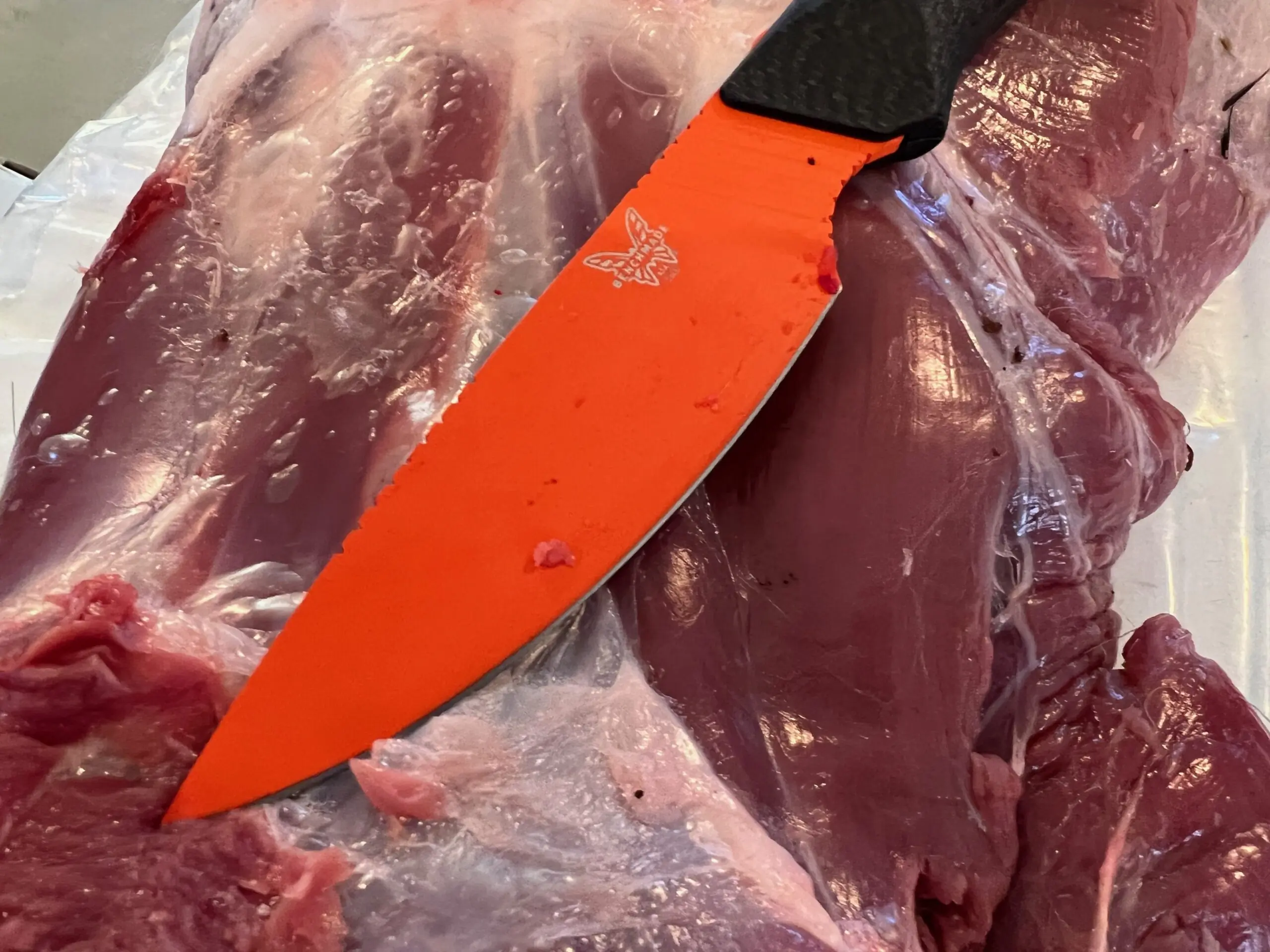 | Benchmade Meatcrafter | $370 | S45VN (also available in several other steels) | 3.24 oz. | 6.08″ | 11.06″ |